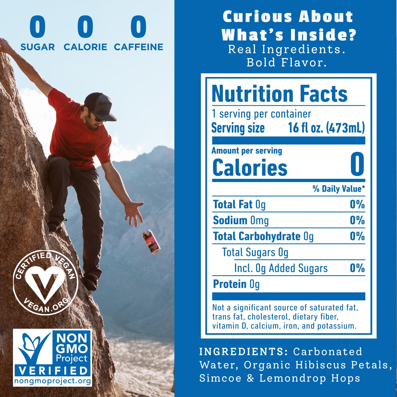 - HIBISCUS + HOPS = TANGY TWIST – Hibiscus petals bring a tangy depth to this sparkling tea, while the hop blend adds soft candied citrus and a delicate herbal finish. Refreshing, but never too fruity or sweet.