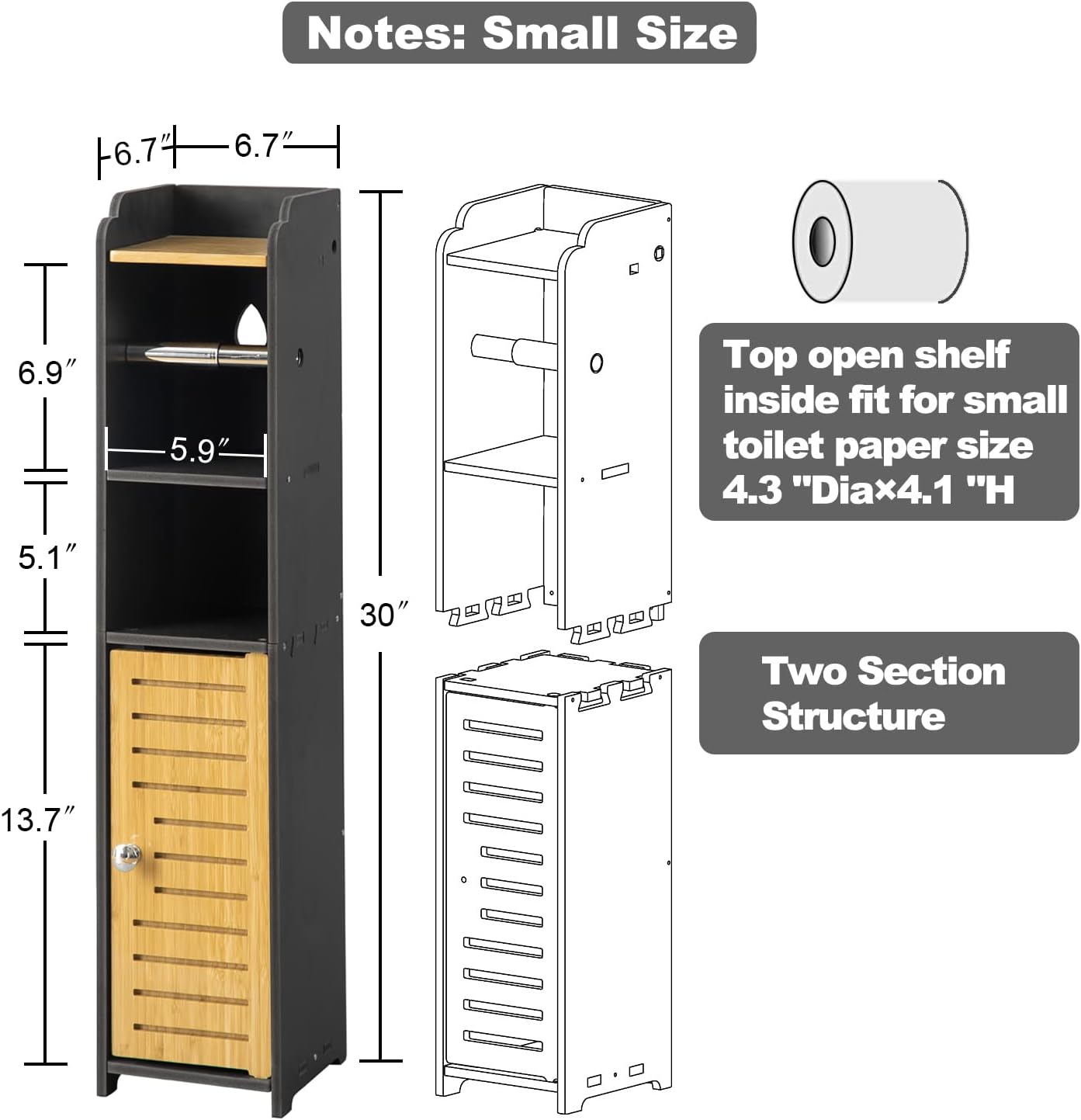 AOJEZOR Toilet Paper Holder Stand: Small Bathroom Storage Cabinet - Black - Bamboo