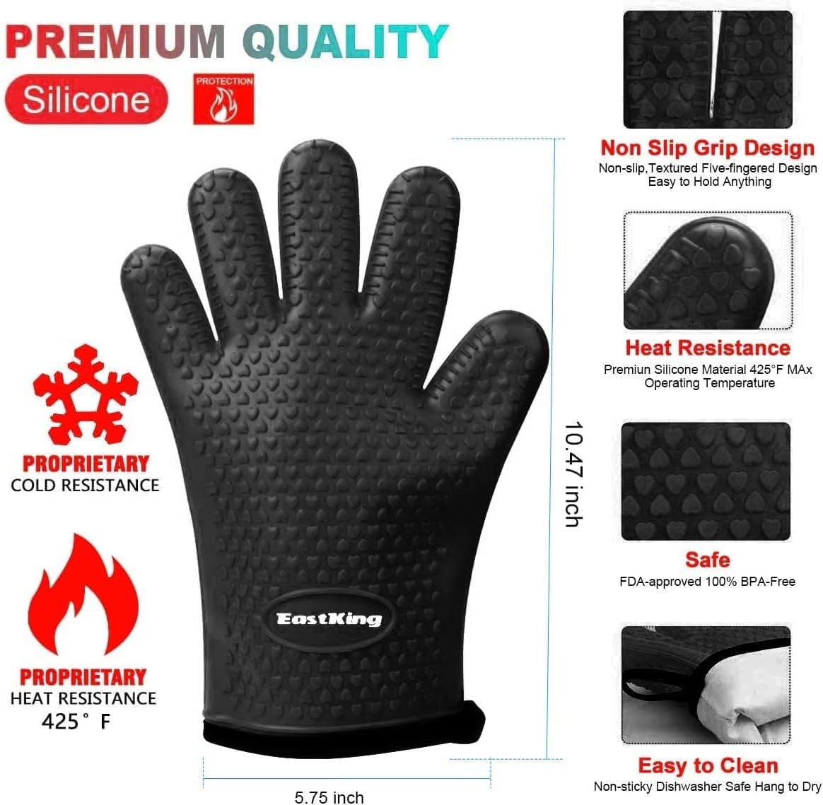 EastKing Smoker Accessories Set-Grilling Oven Gloves,BBQ Claws,Meat Thermometer and Silicone Brush BBQ Set for Cooking Barbecue Baking (Black)