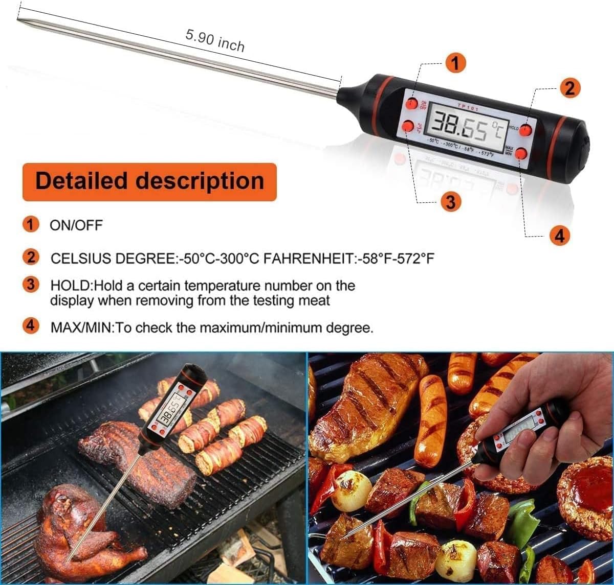 - 【Meat Thermometer】The BBQ instant thermometer that lets you know the temperature of your food accurately. Help you better control the temperature of the food so that you can make a more perfect cooked food. The number displayed on the LCD screen is the instantaneous temperature that will make you at a glance.