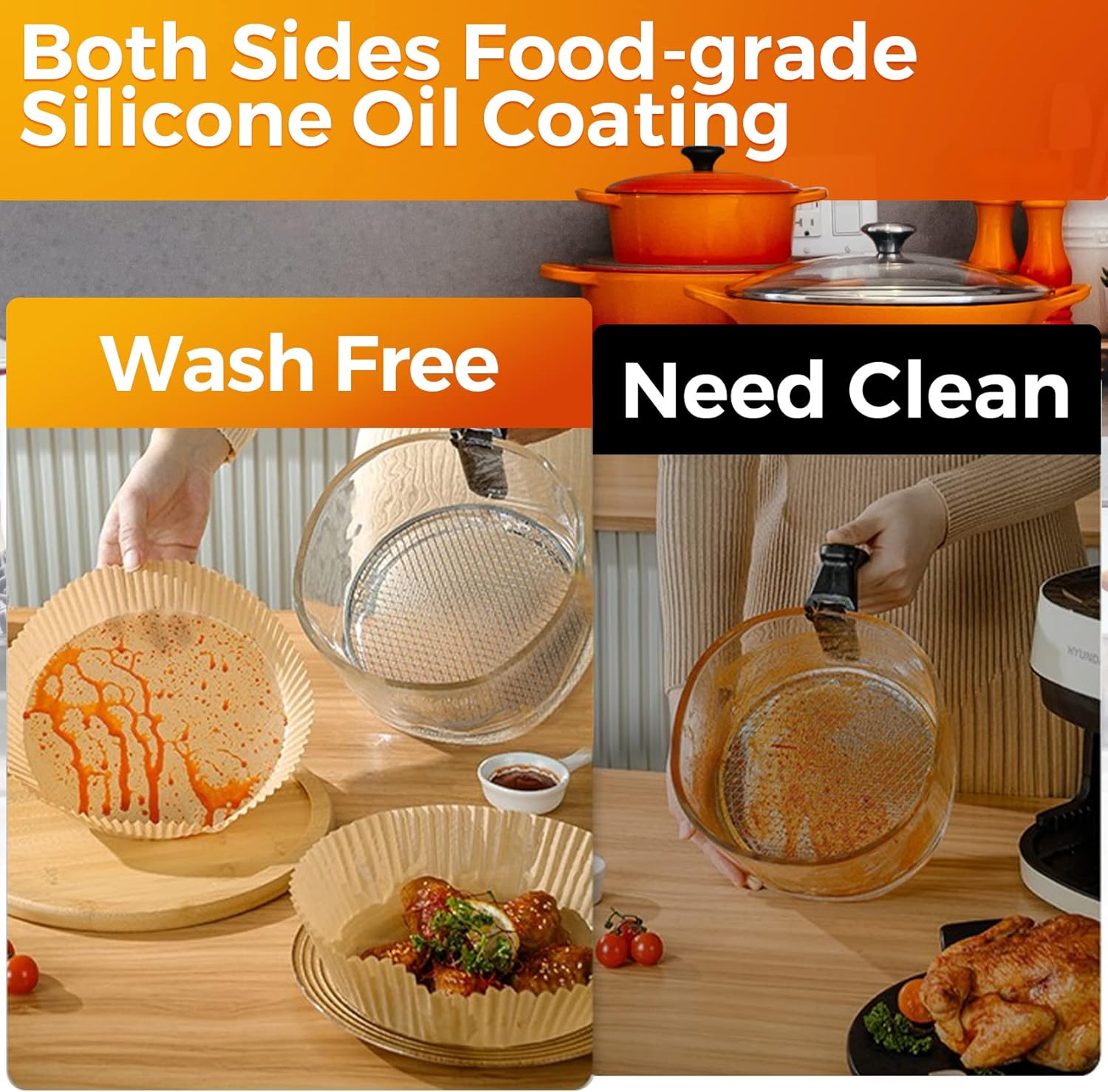 - Time Saving: Vailnd air fryer paper liners come within a box, convenient to storage and ready to use. Non-stick silicone oil coating can reduce extra grease, butter, and food spills, making cleaning easy