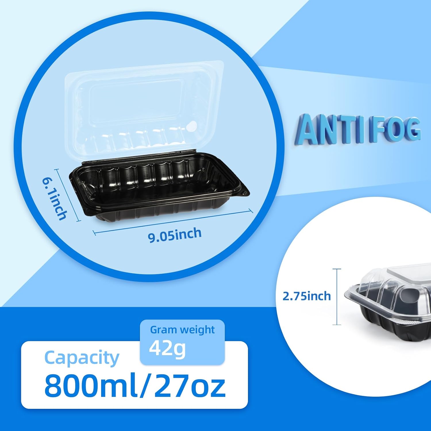 - →APPLICABLE SCENE: This plastic to go containers is specially designed for dining out. 27oz(800ml) big capacity can be used for restaurant takeout packing, home packing, picnic outings, office lunch packing and more. So you can easily store and transport food 9.05×6.1×2.75inch (23×15.5×0.7cm)