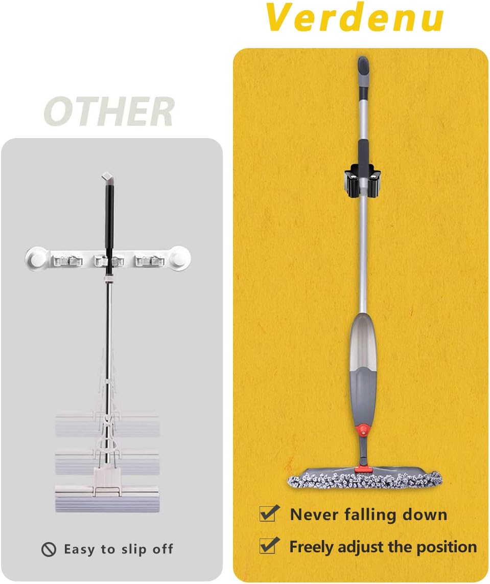 - Space-saving: Can be attached individually and placed individually. Once you clamp the broom handle into the triangular clip, it automatically adjusts to the different thicknesses of the handles and locks it without slipping.