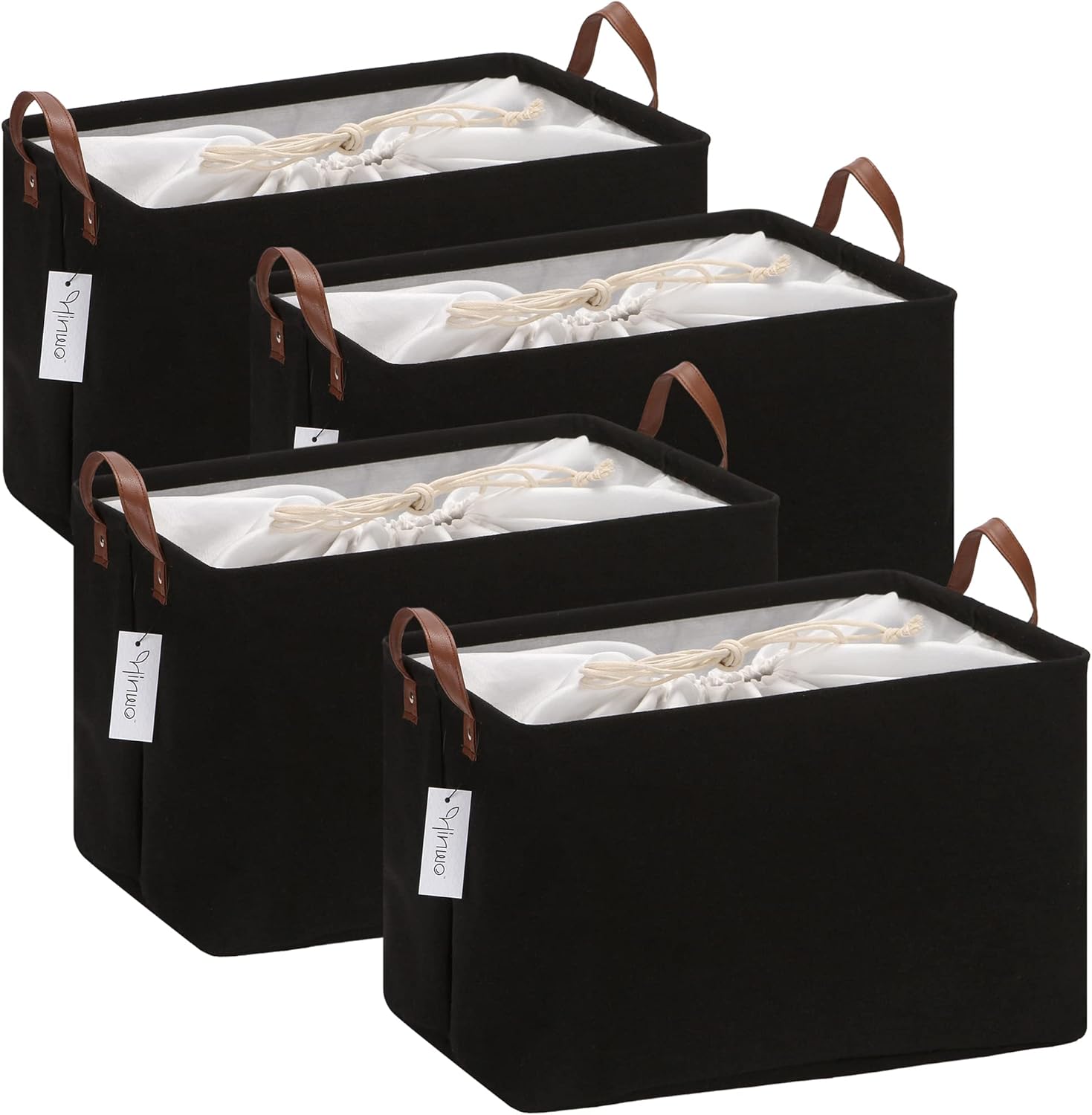 Hinwo 31L Large Storage Bins, 4-Pack Closet Organizers and Storage, Foldable Clothes Storage Baskets with Handles, Containers for Clothing, Blanket, Towels, Toys, Bedding (Black)