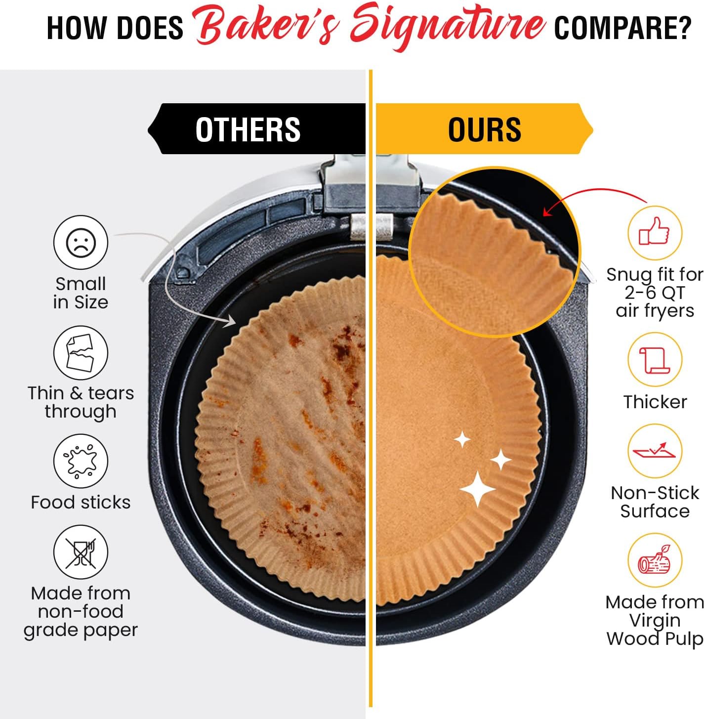 - SPACE-SAVING STORAGE - Our disposable air fryer liners come in a convenient package that fits anywhere. Keep your kitchen organized and clutter-free!