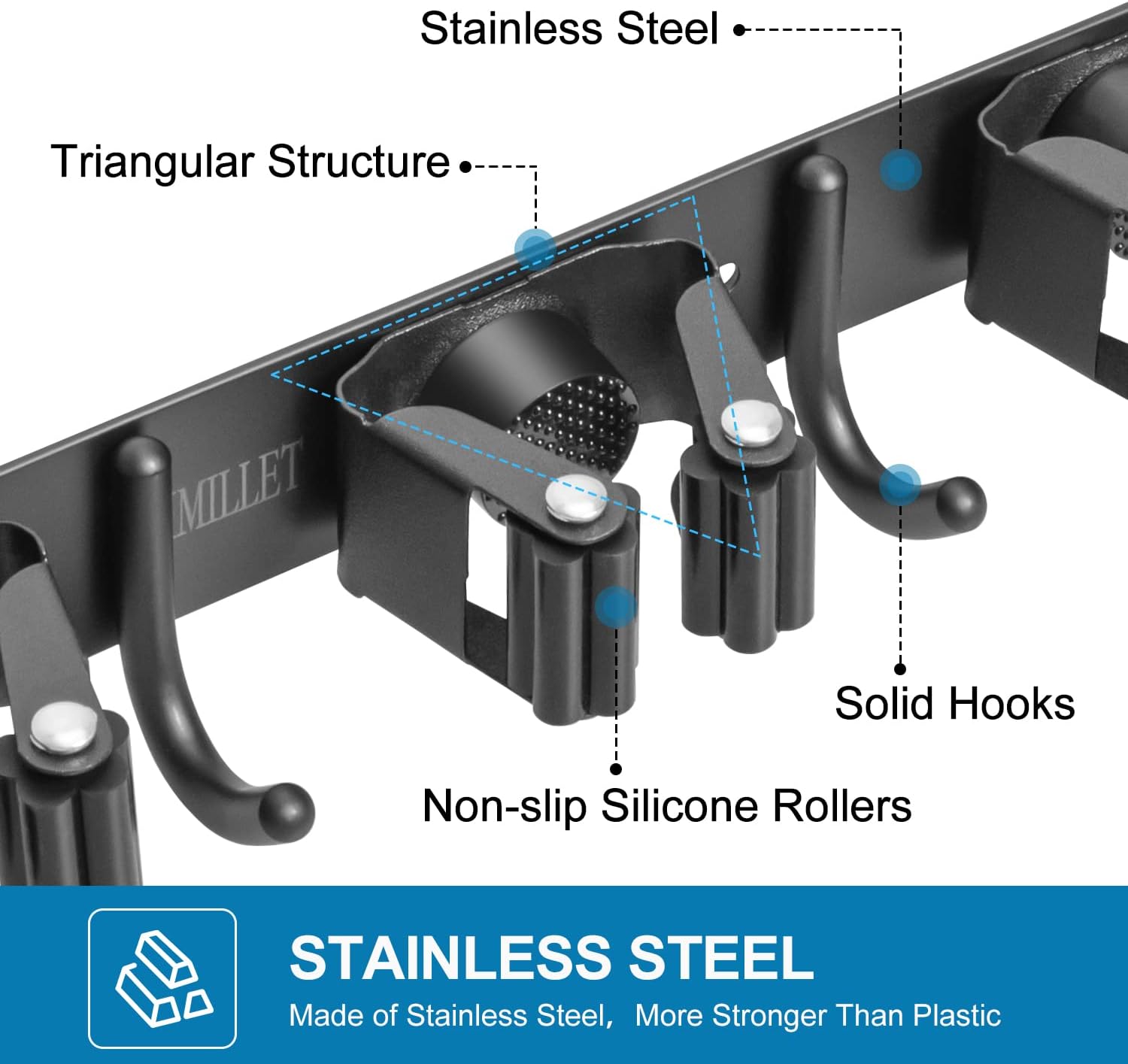 - 🧹 STRONG & STURDY: Broom and mop wall mount is made of stainless steel, corrosion-resistant, moisture proof and waterproof. Compared with the plastic mop holder, it's more stronger and sturdy. And this broom organizer wall mount can hold up to 200 pounds when mounted it with the screws.