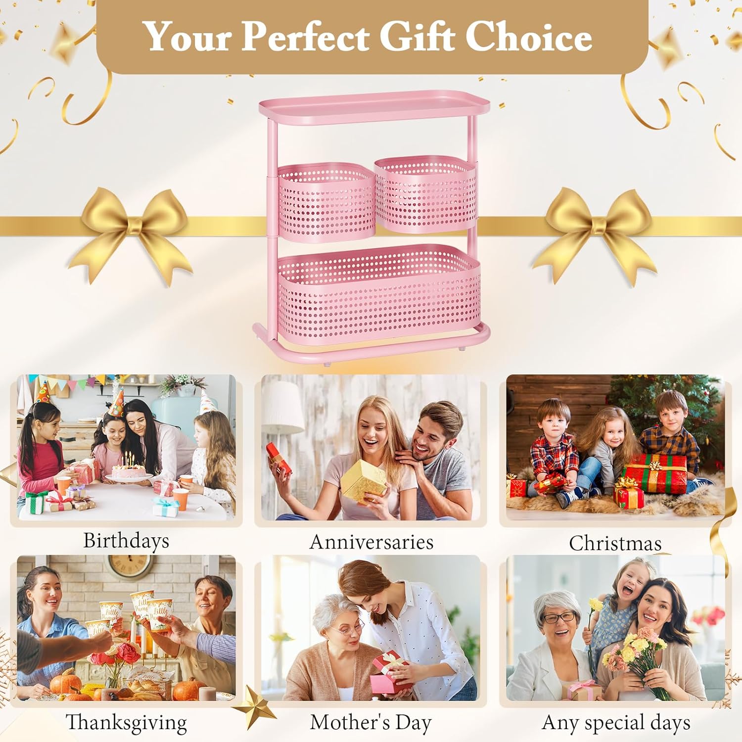KINGRACK 3 Tier Bathroom Organizer Countertop, Multi-Purpose Makeup Organizer, Rotating Desktop Skincare Organizer, Vanity Tray Standing Rack for Bathroom, Pink