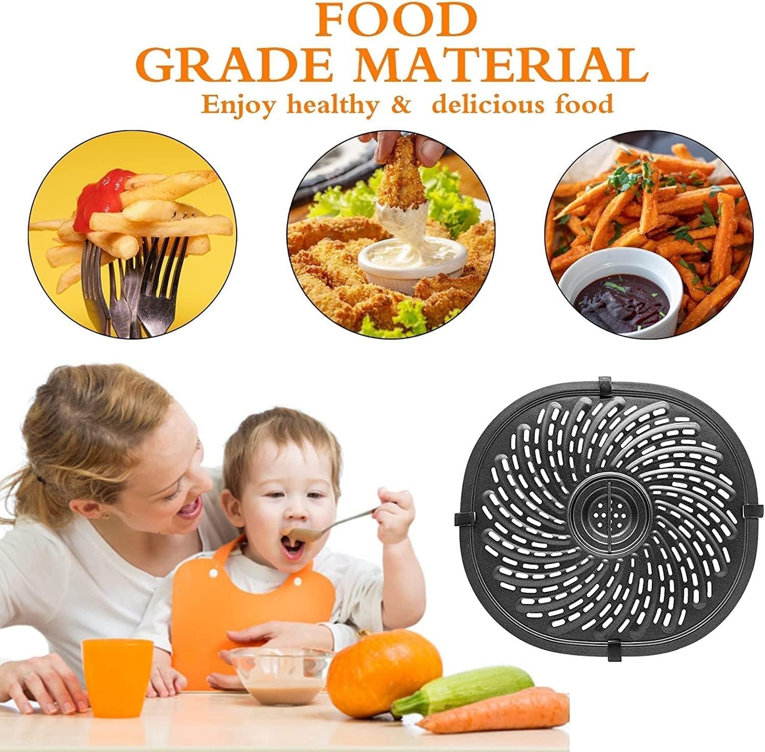 - Upgraded Food Grade Material: Our air fryer grill plate is made of food grade carbon steel material, meets FDA standards, BPA-free, non-toxic and tasteless. You don't need to worry about hazardous chemicals. Just enjoy your healthy cooking!