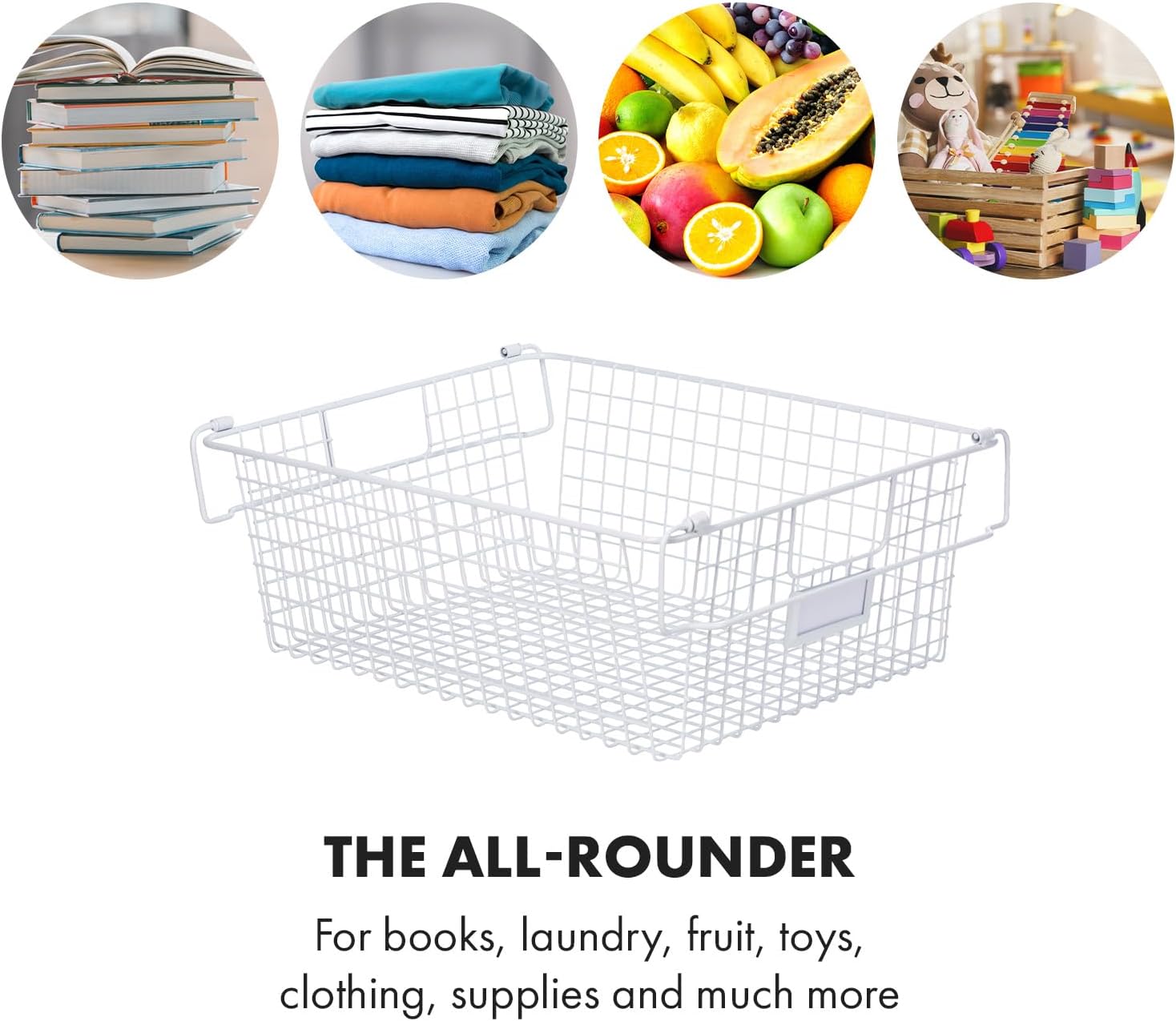 - VERSATILE XL WIRE MESH BASKETS: Hands down, the possibilities to use a metal storage basket are countless; organize cans, snacks, fruit, vegetables, but also clothes, scarves, socks, office supplies, and you can even use it as a wire toy basket.