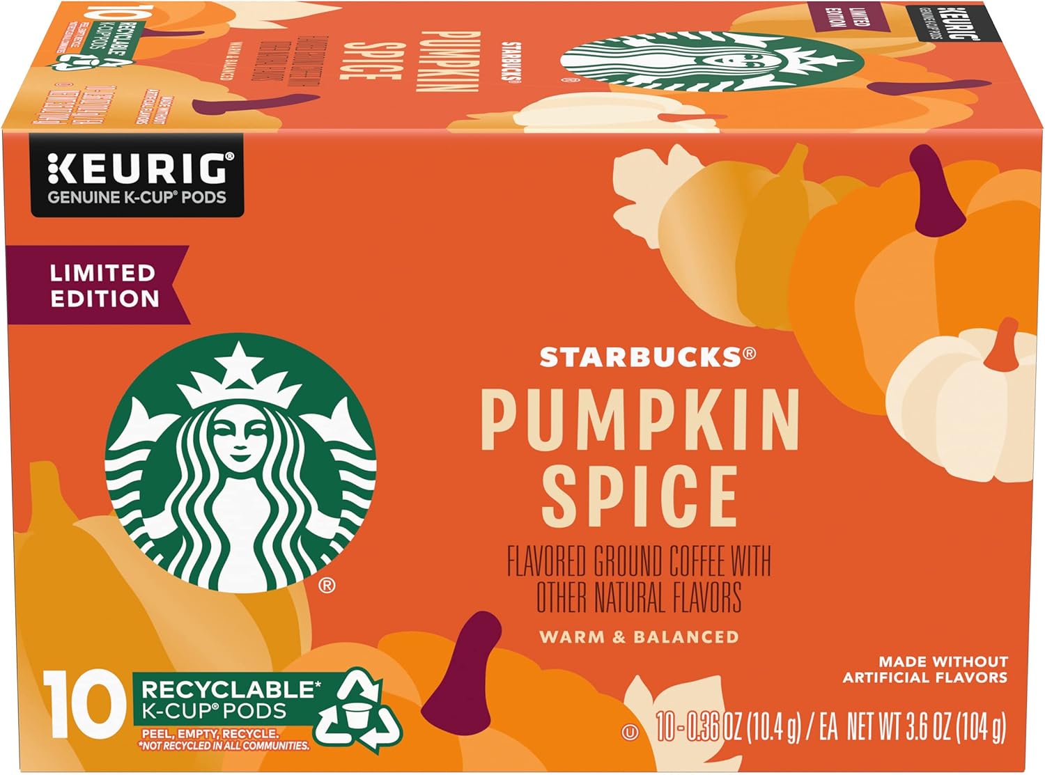 Starbucks Pumpkin Spice Coffee K-Cup Pods, Limited Edition, Made without Artificial Flavors, Keurig Genuine K-Cup Pods, 10 CT K-Cups Per Box (Pack of 3 Boxes)