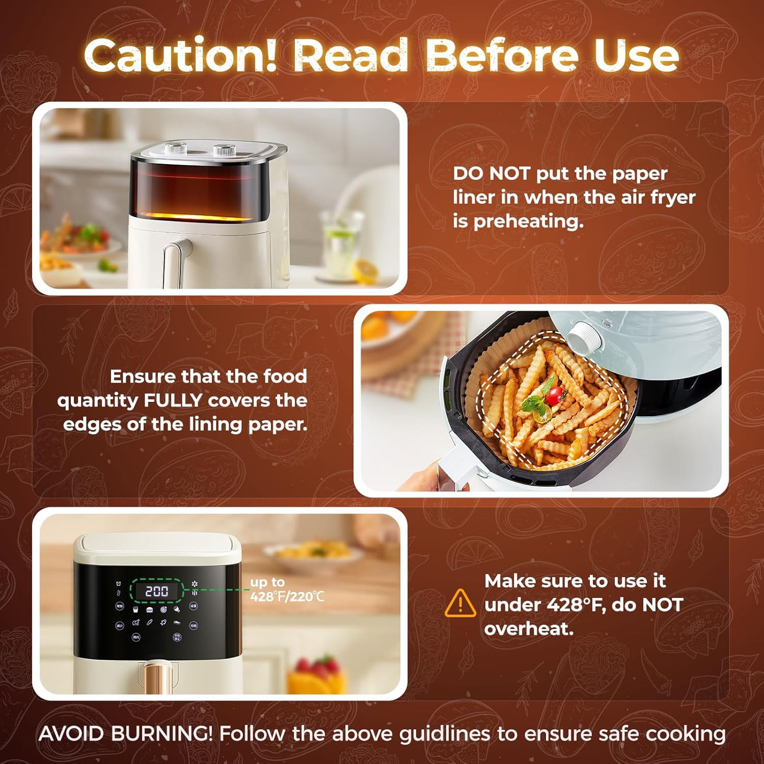 - 【Leak-Proof Design】Built with a durable 3-layer structure and double-sided plant silicone coating, these air fryer liners are leak-proof and tear-resistant. Waterproof, oilproof, non-stick, and fully biodegradable, they withstand up to 428°F(220℃) without impacting food taste or safety—for reliable, easy cooking.