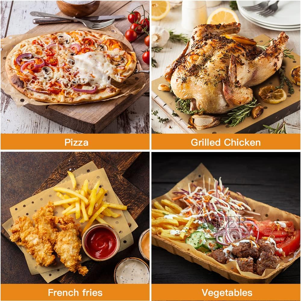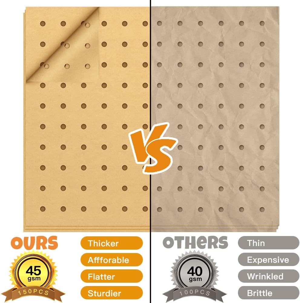 - Healthy and Crisp : Air fryer disposable parchment paper Liner with perforated holes that allow the food to be heated evenly in all directions. without oil added