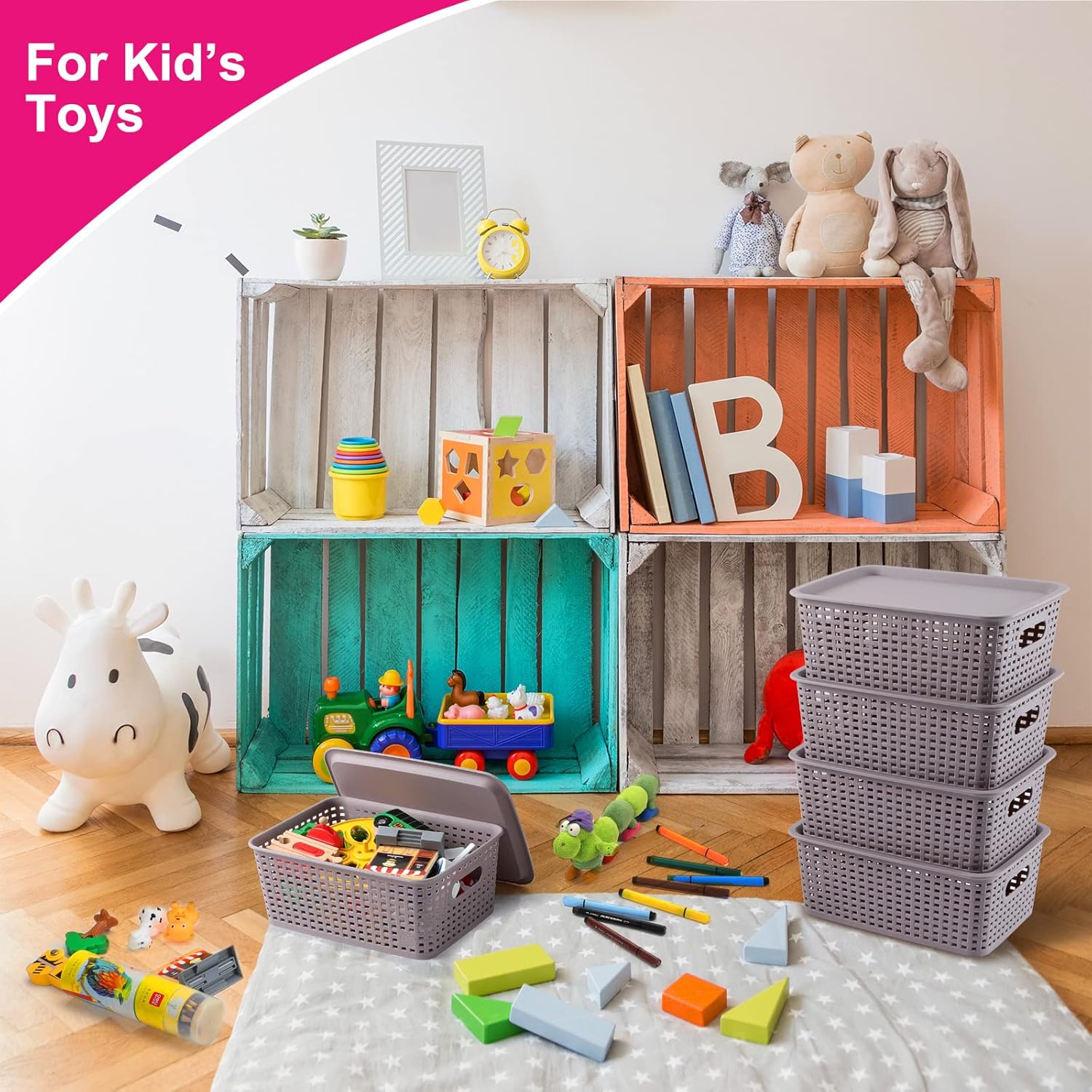 - 【VERSATILE FOR ALL SPACE STORAGE】:These lidded organizing baskets help to keep your room tidy and clean. These small storage baskets are great for storing all you homes goods in all kinds of spaces like closets, cubbies, shelves, countertop in bedroom underbed or classroom.