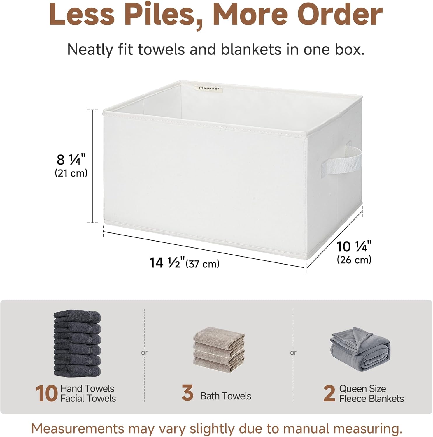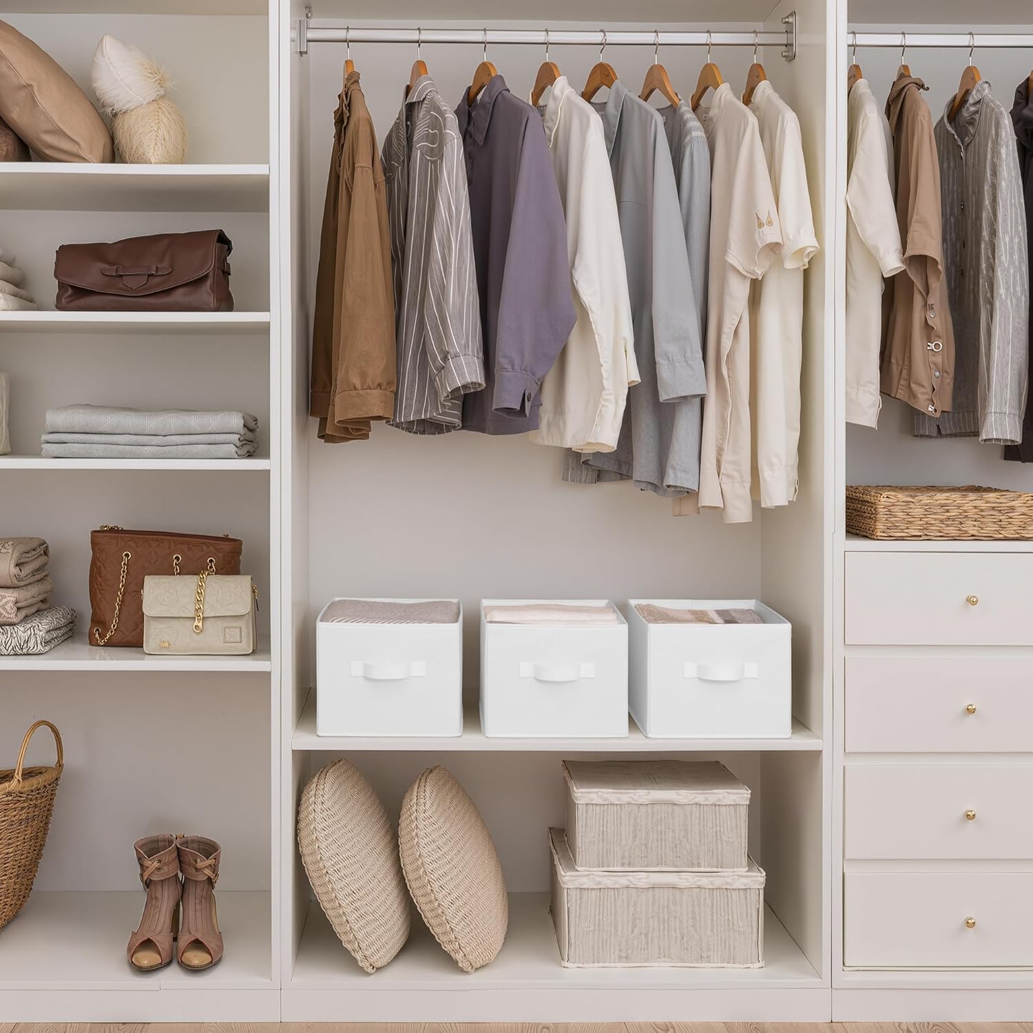 StorageWorks Storage Baskets for Shelves, Foldable Fabric Closet Storage Bins with Handles, Fabric Storage Bins Clothes Organizer, White, 3-Pack, Large