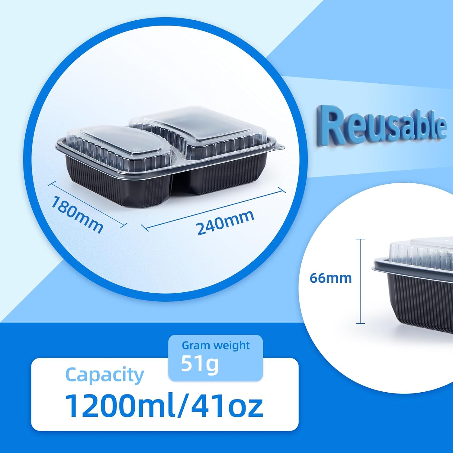 - ✓41OZ DUAL-ZONE CAPACITY: 24cm x 18cm x 6.6cm, 2 compartments. Ideal for steak/sides curry/rice combos.