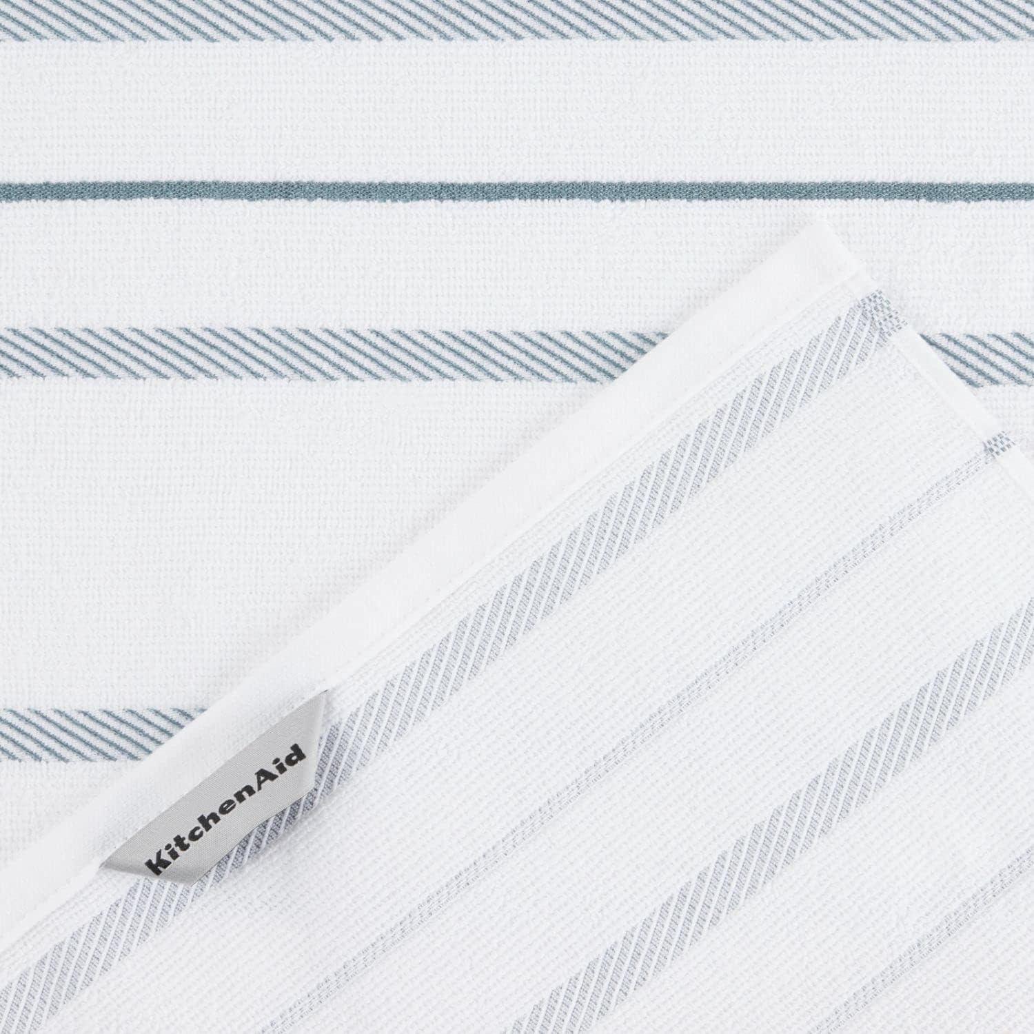 KitchenAid Albany Kitchen Towel 4-Pack Set, Fog Blue/White, 16"x26"