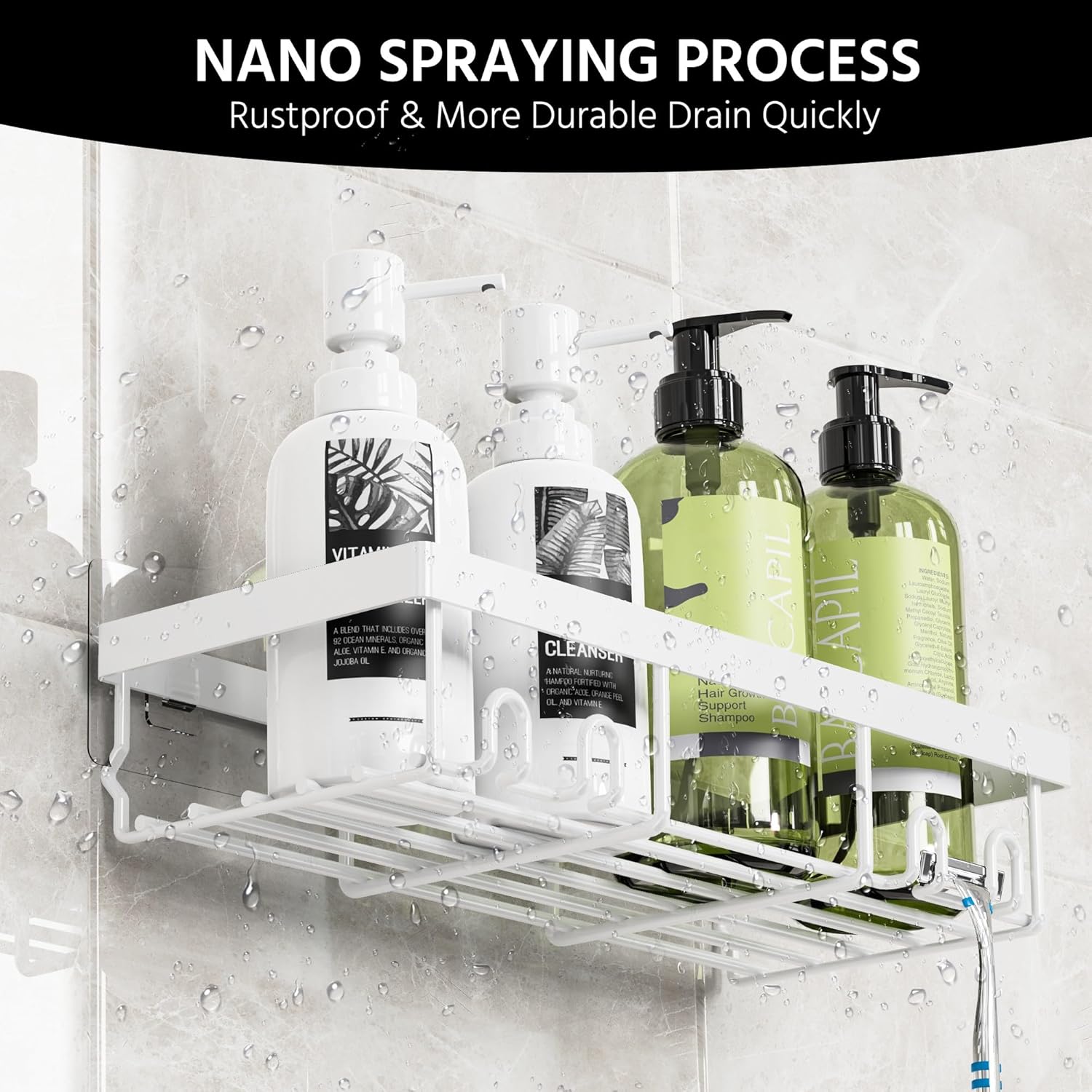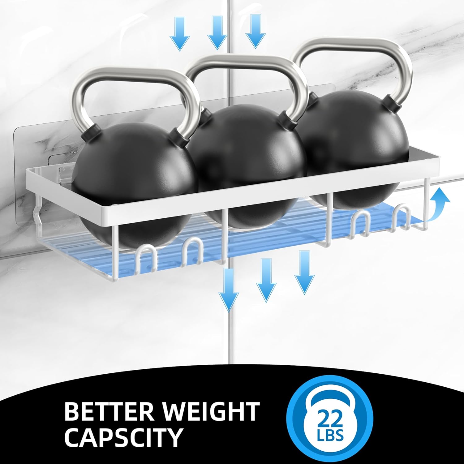 Moforoco 3-Pack Shower Caddy Basket Shelf with Soap Holder, No Drilling Traceless Adhesive Shower Wall Shelves, Rustproof White Bathroom Shower Storage Organizer