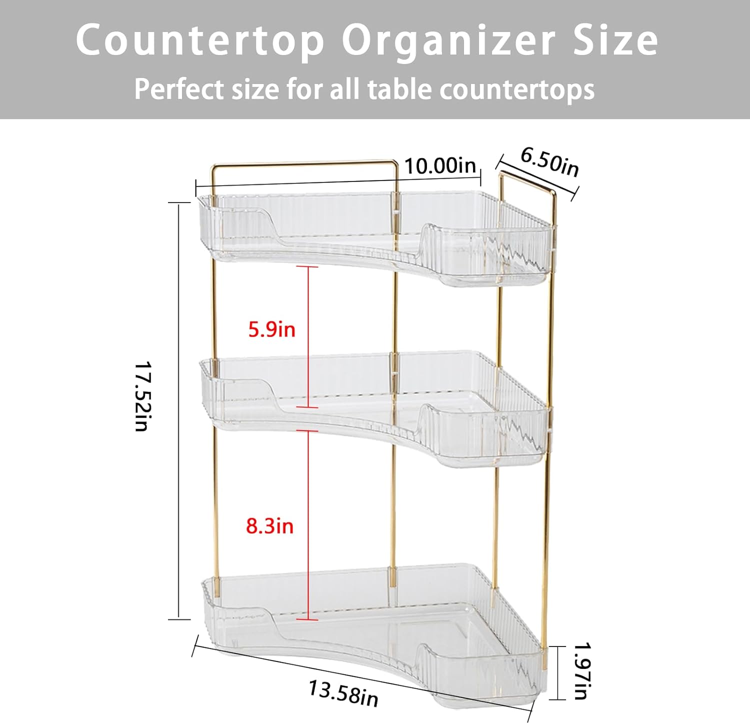 - Multiple Sizes for Any Space:The 2-tier design measures 13.6 x 10 x 11.6 inches, while the 3-tier version measures 13.6 x 10 x 17.5 inches. Its sleek and practical design fits perfectly in bathroom corners, kitchen counters, and more, combining aesthetics with functionality