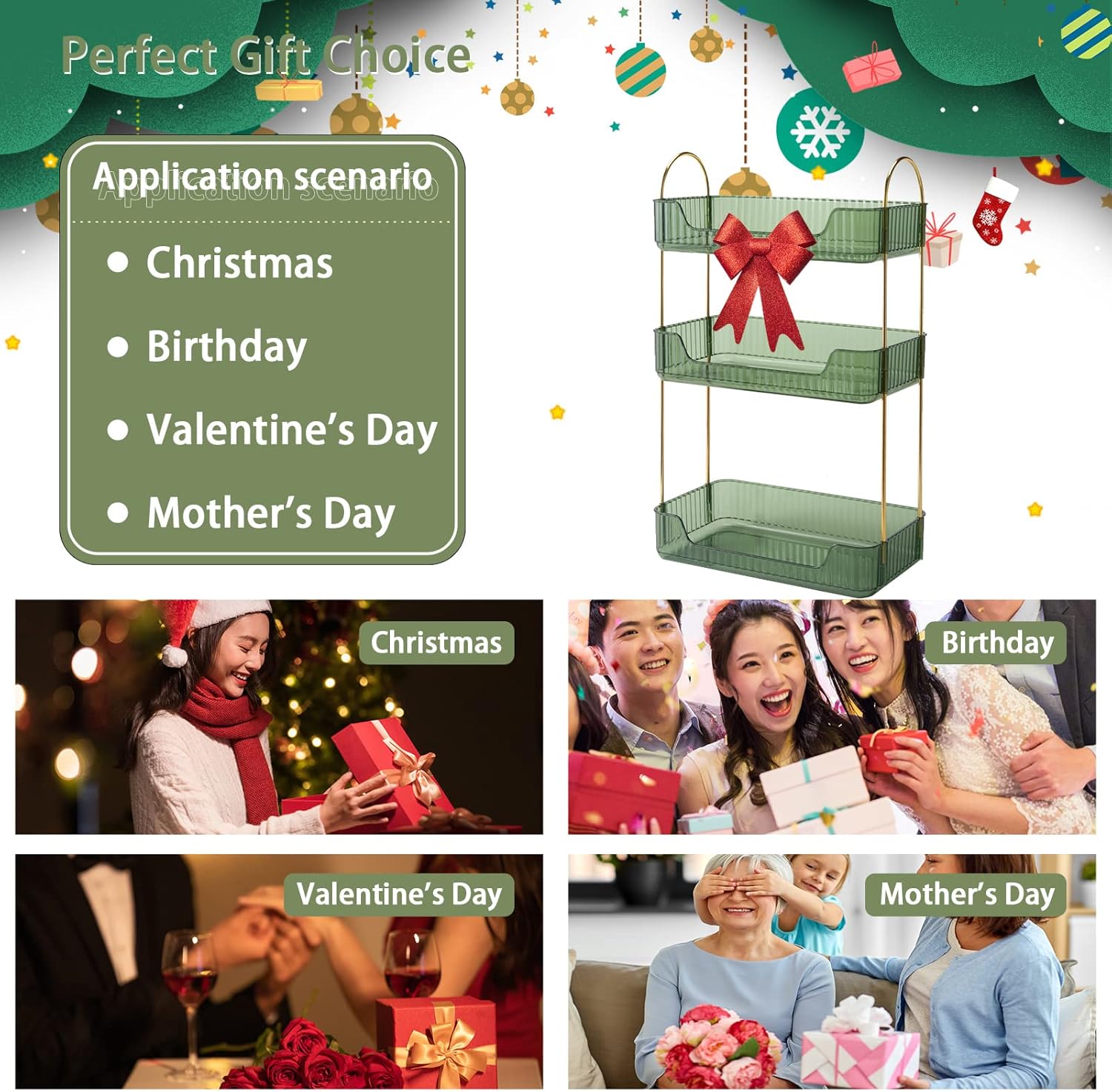 Bathroom Counter Organizer - Countertop Storage, Cosmetics & Skincare Shelf, Makeup & Perfume Organizer, Spice Rack for Kitchen (3 Tier - Green)
