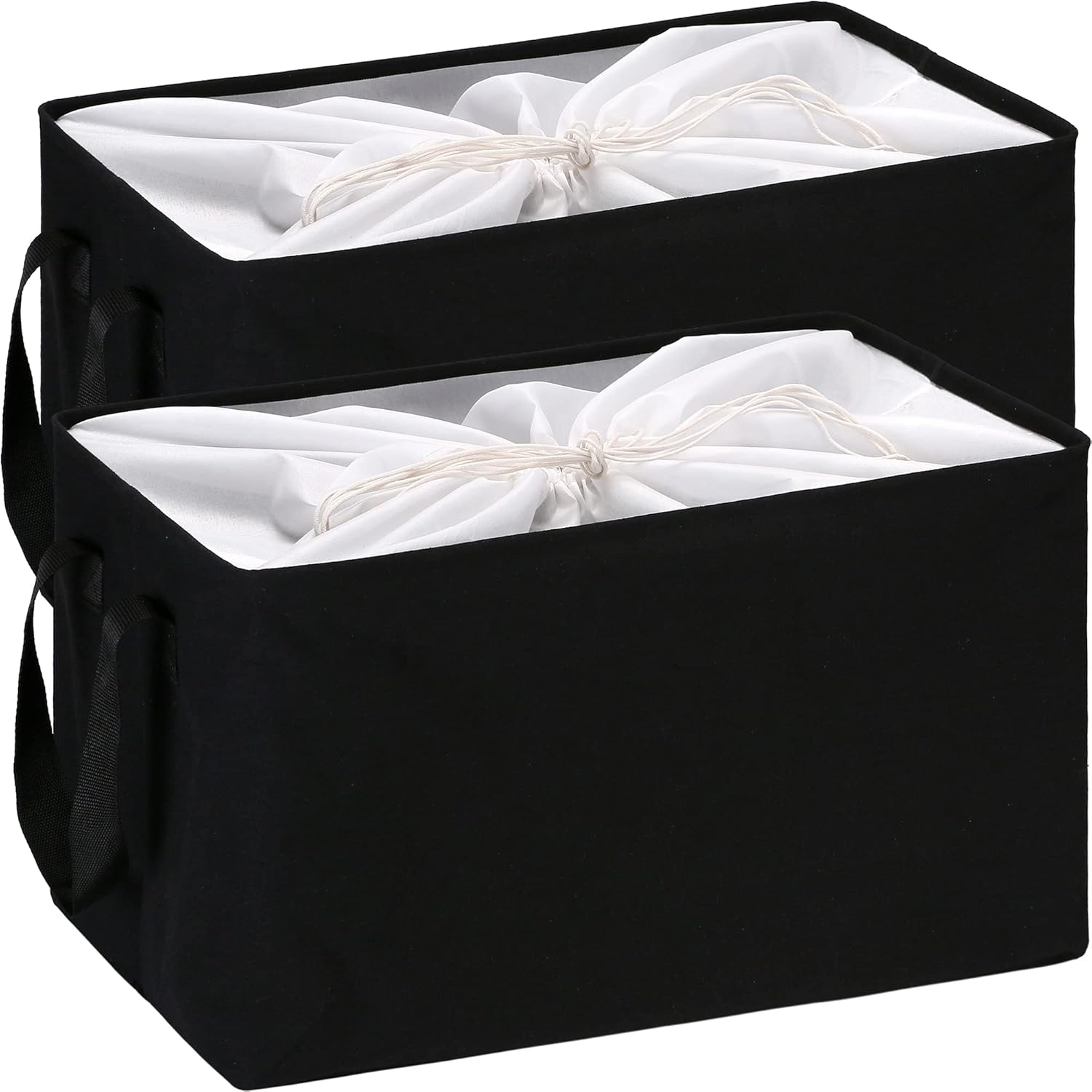 Hinwo 102L XXL Storage Bins, 2-Pack Closet Organizers and Storage, Foldable Clothes Storage Baskets with Handles, Containers for Clothing, Blanket, Comforters, Toys, Bedding (Black)