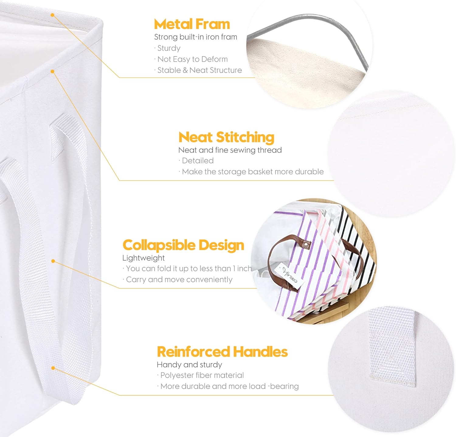 - Easy to Carry – Equipped with a pair of sturdy polyester fiber side handles, the storage basket can be easily moved, carried up and down stairs when filled with items, which is perfect for daily use, changing season and moving house