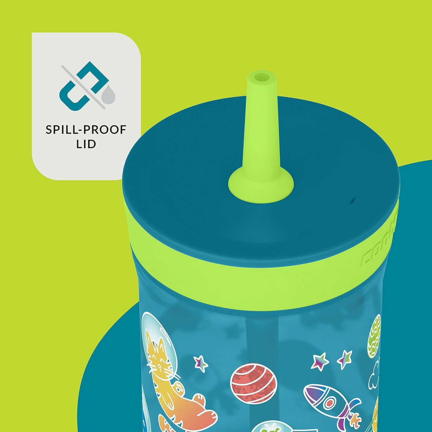 - SPILL-PROOF STRAW LID — Unique valve opens only when your child sips and closes automatically between drinks to reduce spills, drips and messes.