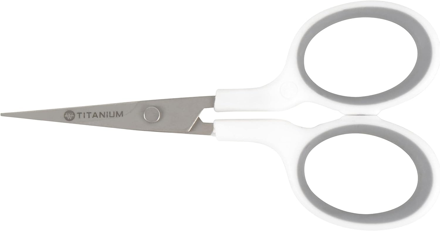 Westcott 4" Embroidery Scissors with Curved Titanium-Bonded Blades for Flush Trimming, Crafting, Sewing & More (White/Gray)