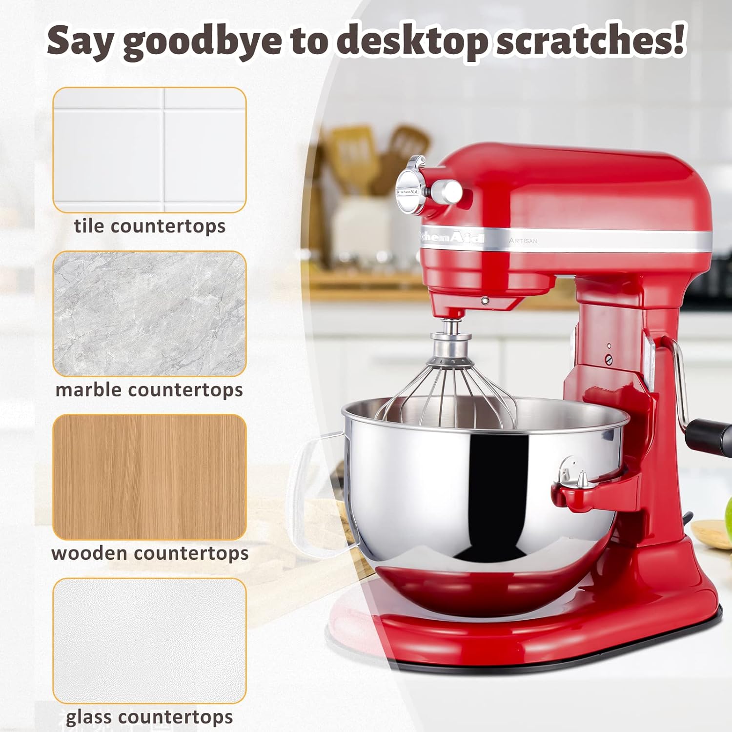 - PROTECT COUNTERTOP AND SAVE SPACE : The countertop bottom slider is made of PTFE with self-adhesive pad, smooth surface, won't leave marks or make noise, suitable for wood, tile and marble countertops. It takes up no extra counter space and is a boon to small kitchens and those with limited space