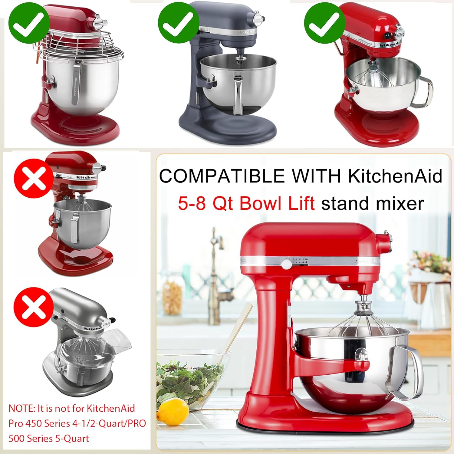 - PERFECT SHAPE FIT : The mixer slider mat is specially tailored for KitchenAid professional 5-8 qt Bowl-lift Stand Mixer, which fits perfectly under your mixer. The mat slider is not only aesthetics, but also saves space on the countertop; Compatible Models: KSM70; KSM55; KSMC895; KSM899; PRO600. NOT COMPATIBLE WITH K5SS