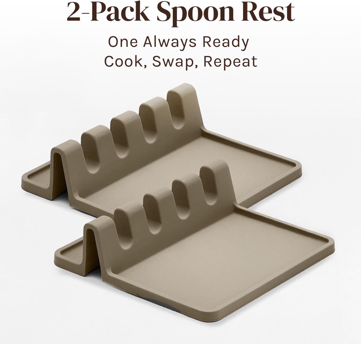 - ENJOY A NICE & CLEAN COUNTERTOP: Start cooking like a pro with our universal silicone utensil rest! Maximize your counter space and minimize mess by keeping all your cooking or grilling utensils neatly organized in your kitchen workspace. You will absolutely love cooking with a Cooler Kitchen silicone spoon holder! ROTATE TWO UTENSIL RESTS! The best part about having two is being able to swap one out for another when it gets dirty!