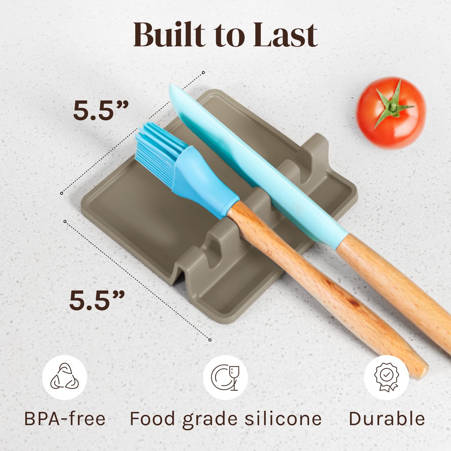 - QUALITY SILICONE TO STAND THE TEST OF TIME: Made from a durable, dishwasher friendly, food grade silicone, our sturdy space friendly spoon rack is the ideal tool to keep counters neat and organized while cooking. The silicone material ensures that food washes off easily, making clean up a breeze with or without a dishwasher. The flexible material ensures that this kitchen spoon rest will hold up to heavy duty usage for years to come without shattering or cracking like most ceramic spoon rests.
