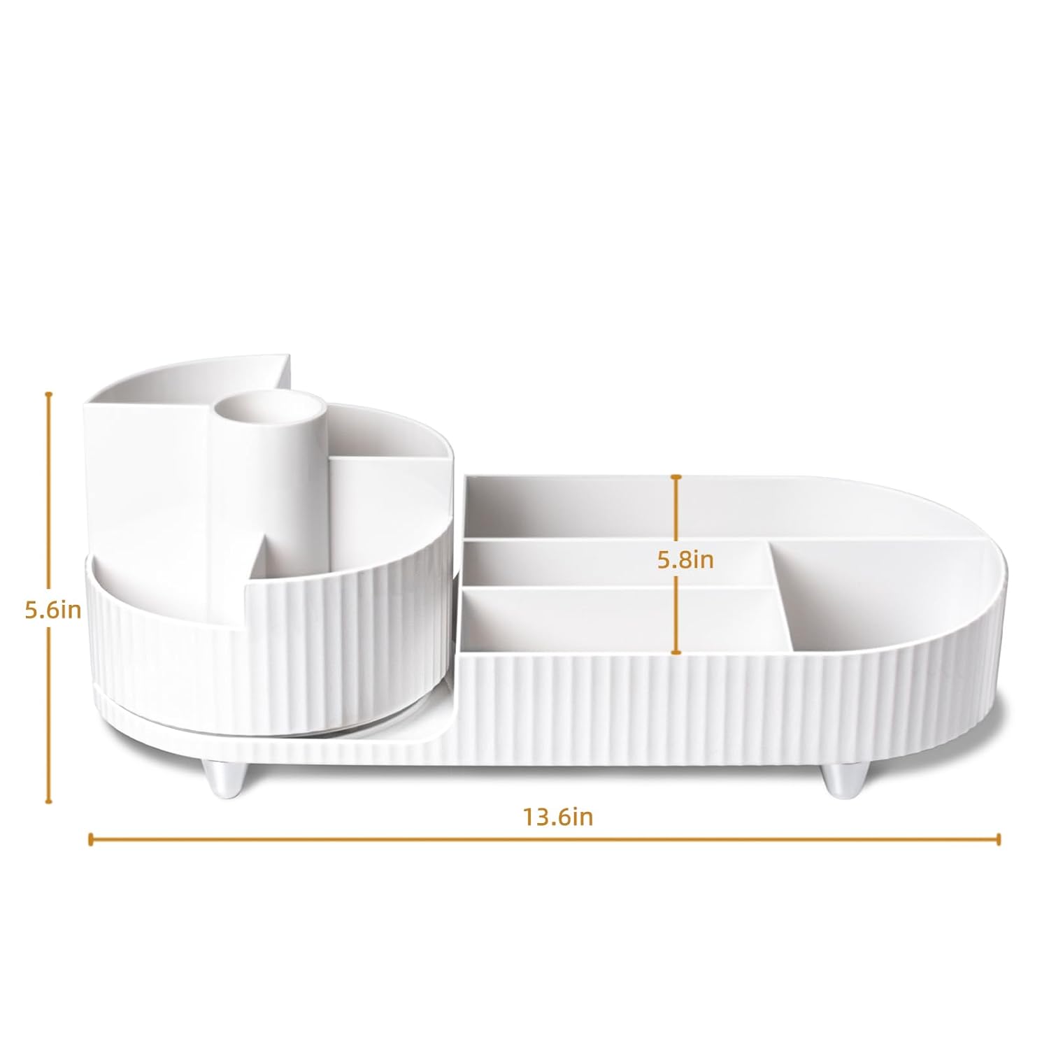 Rotating makeup organizer,Large Capacity Cosmetic Display Case, easy to hold all of your makeup products, at least 20 makeup brushes/eyeliner,10 lipsticks,8 skincare products(White)