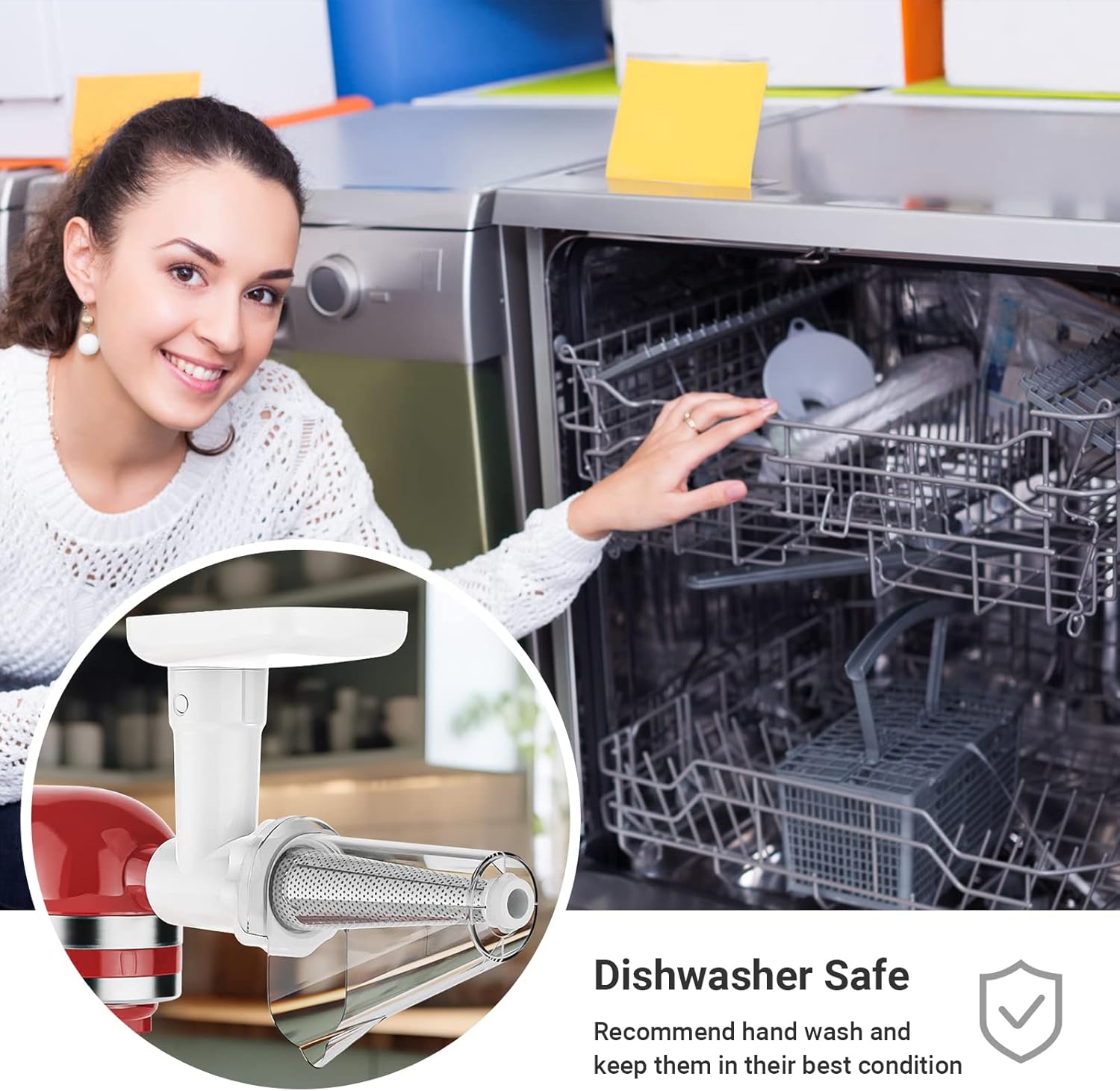- Easy Cleaning to Save Time: All parts of the KitchenAid fruit and vegetable strainer attachment and KitchenAid meat grinder attachment are removable, making cleanup a breeze.They’re dishwasher safe (or can be hand-washed quickly with soap and warm water—max 122°F), and a cleaning brush is included for hard-to-reach spots. Plus, the set comes with built-in instructions and healthy recipe ideas—perfect for summer cooking and beyond!