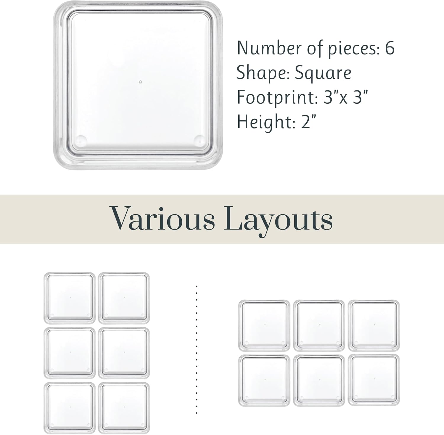 - This comprehensive set includes six meticulously crafted 3-inch by 3-inch shallow drawer organizers, designed to accommodate your essentials with precision. And with additional sizes available, you have the freedom to expand your organizational arsenal to tackle any cluttered drawer with finesse.