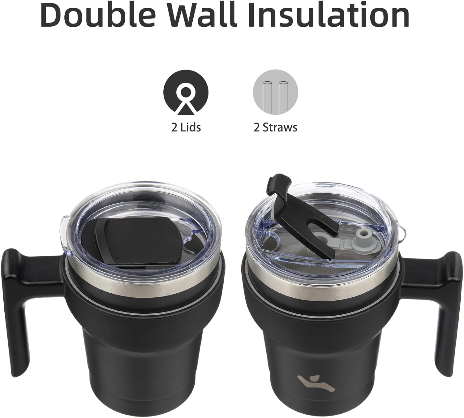 10 oz Tumbler with Handle and 2 Straw 2 Lid, Insulated Water Bottle Stainless Steel Vacuum Cup Reusable Travel Mug,Black