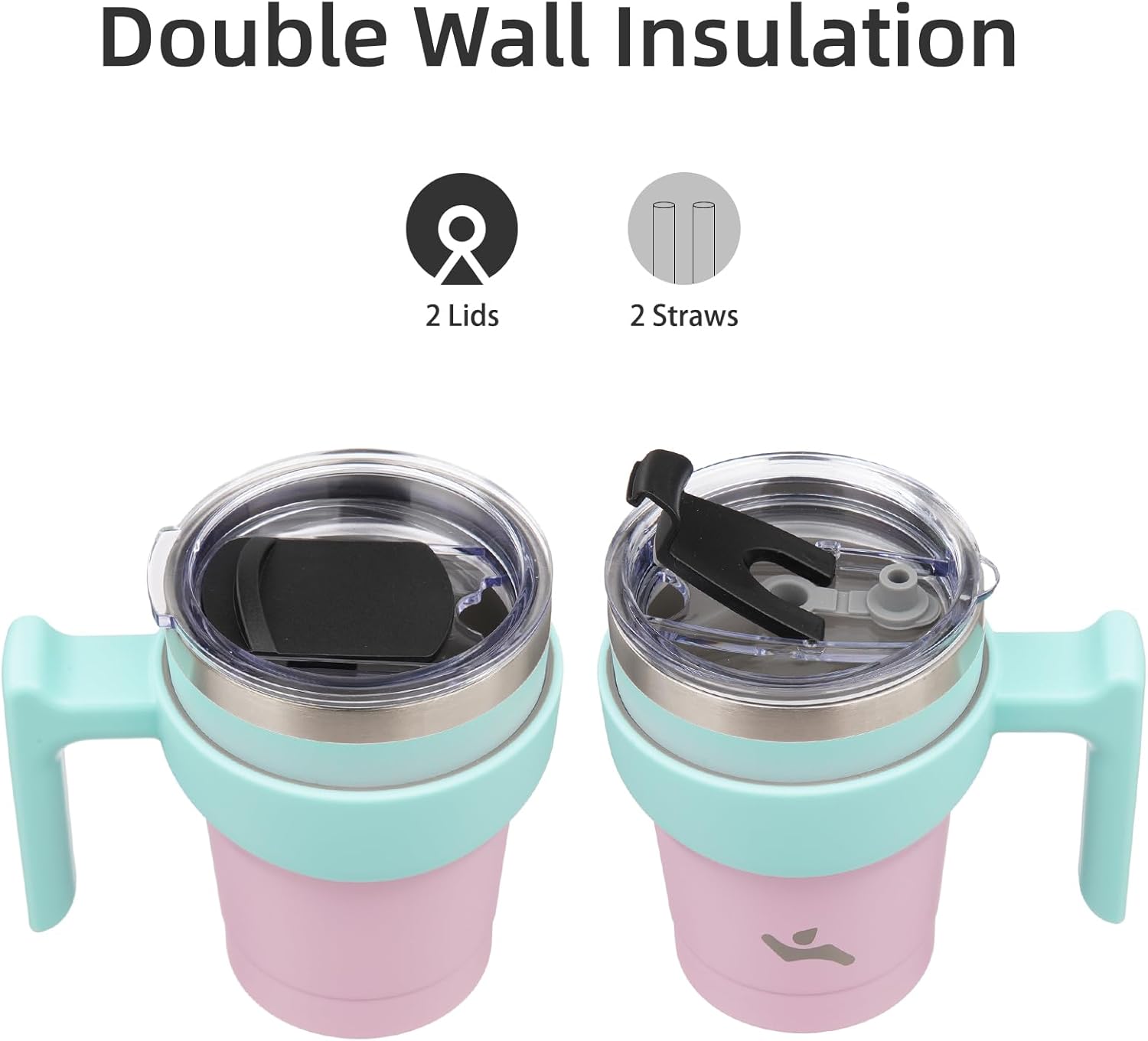 - Designed with a tapered shape and slim-base,the tumbler easily fit in most cup holders. Detachable handle gives versatility to adjust your grip according to your preference or remove it entirely for added flexibility