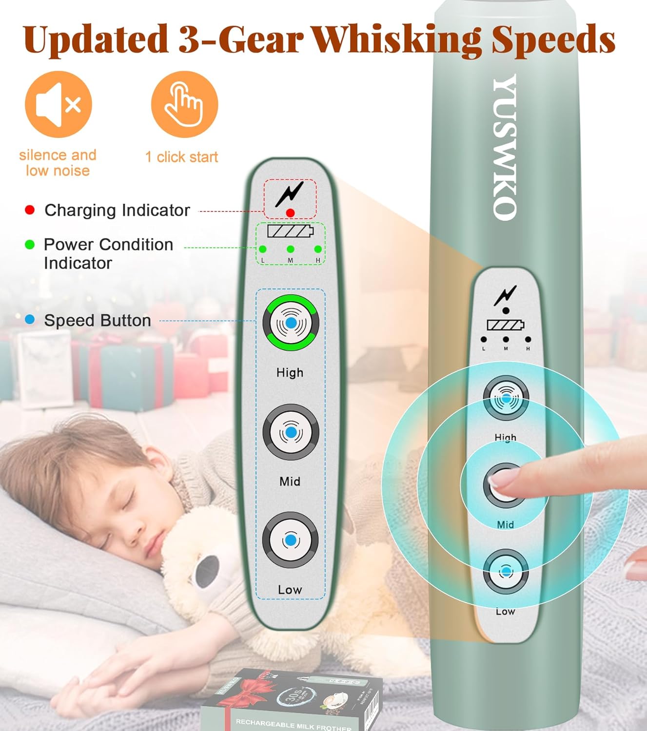 - 🎀【3-Speed Settings】The coffee mixer has 3-speed buttons on the main body of the mini hand mixer, low, medium and full, allowing you to control and achieve the ideal milk frothing effect. Rich foam can be created in 30 seconds, allowing you to instantly enjoy the silky drink! Just rinse this frother handheld with running and clean water after use. Low, medium and high battery status indicators, the remaining power is clear at a glance, and schedule a charge anytime.