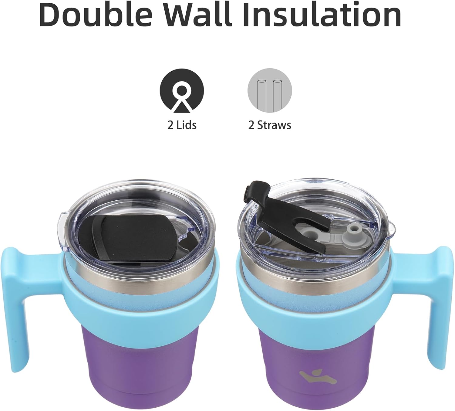 - Designed with a tapered shape and slim-base,the tumbler easily fit in most cup holders. Detachable handle gives versatility to adjust your grip according to your preference or remove it entirely for added flexibility