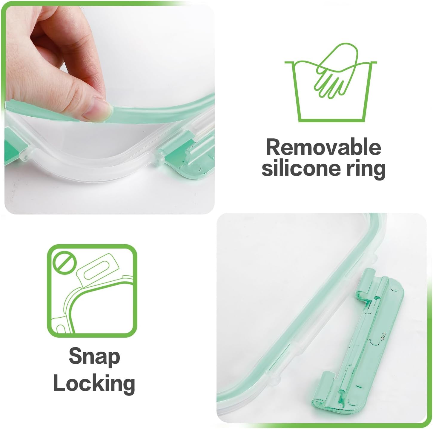 - [BPA Free & Easy to Clean] BPA-Free plastic locking lid is safe as well as leakproof. Crystal clear borosilicate glass is easy to clean without absorbing stains or smells. They are dishwasher safe to instead of hand washing. Also the silicone seal is removable for your to clean and dry it. In order to prevent seal sticking to the containers, please must wash the lids and containers before put them away