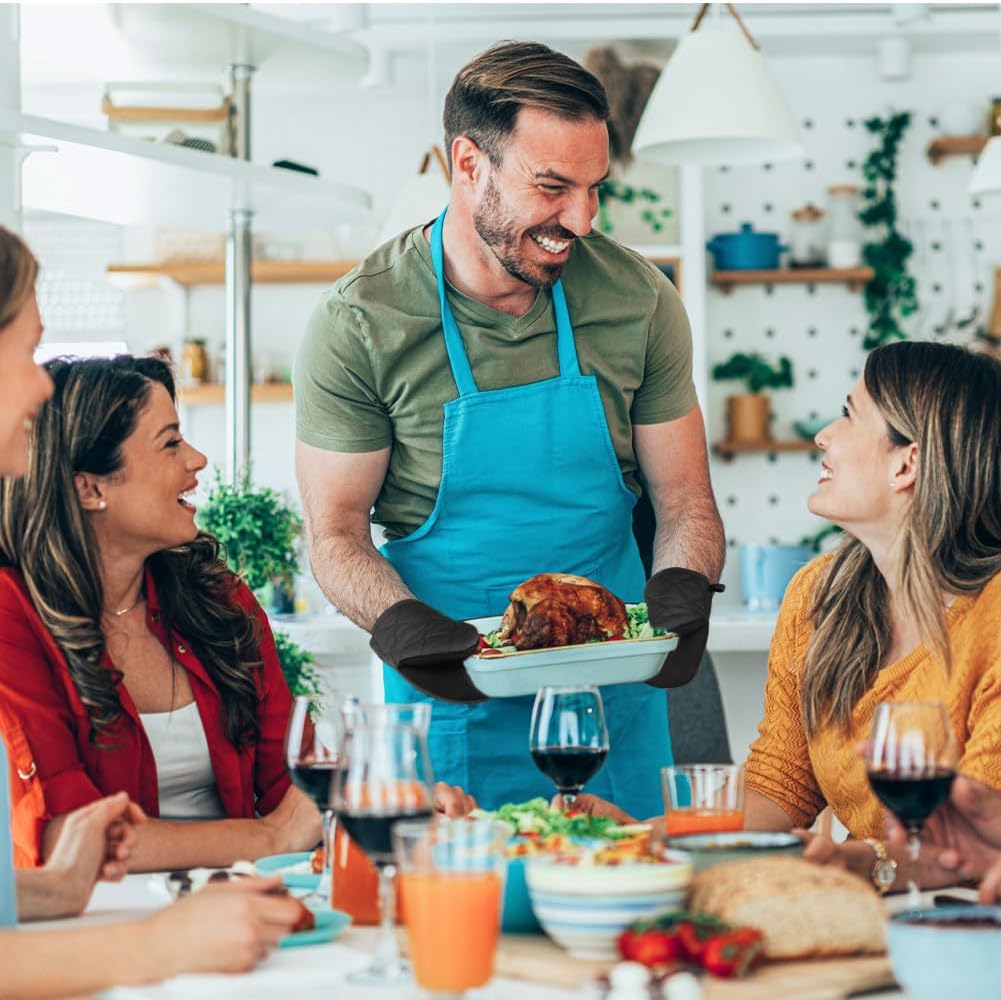 - 【HEAT RESISTANT MATERIAL】AUAUY Oven Gloves are heat-resistant insulating pads made of soft quilted cotton lining and rubber that can withstand temperatures up to 220℃/428°F. At the same time, it helps you safely grip hot items for optimal protection in the kitchen or while grilling outdoors.