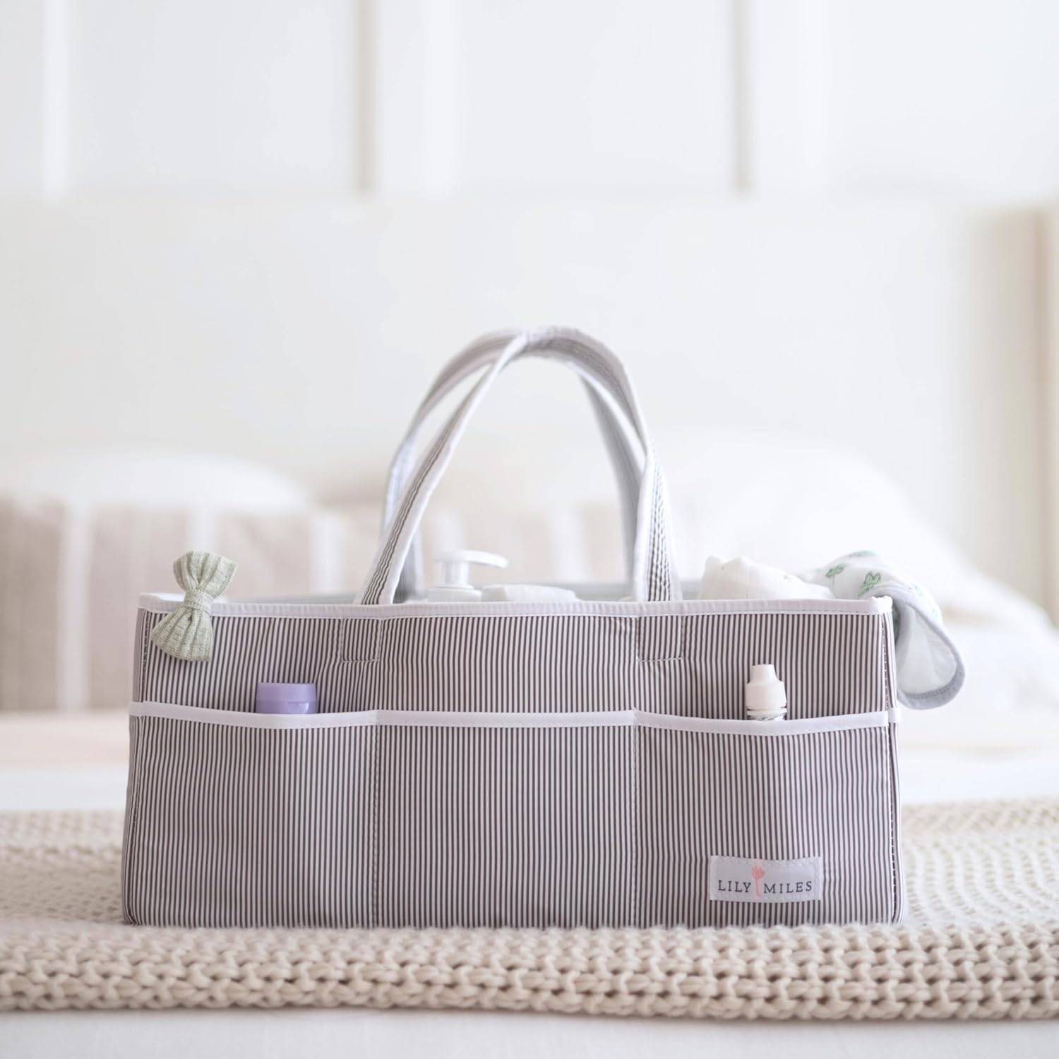 - Extra Large Diaper Caddy Organizer for Boy or Girl Nursery Room - Our diaper tote is designed with adorable style and colors, and is built with quality fabric. It is soft to touch and high standard you would expect, including removable organizing dividers that you can organize diapering essentials such as diapers, wipes, lotions, toys and many more, all in one place.