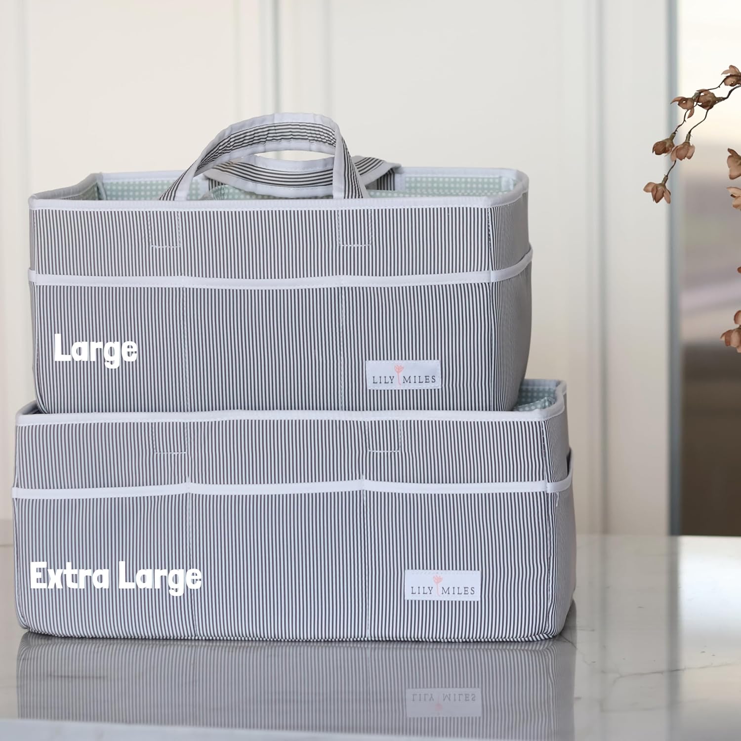 Lily Miles Baby Diaper Caddy - Organizer Tote Bag for Infant Boy or Girl - Baby Shower Basket - Nursery Must Haves - Registry Favorites - Newborn Caddie Car - Gray/Gray, Extra Large