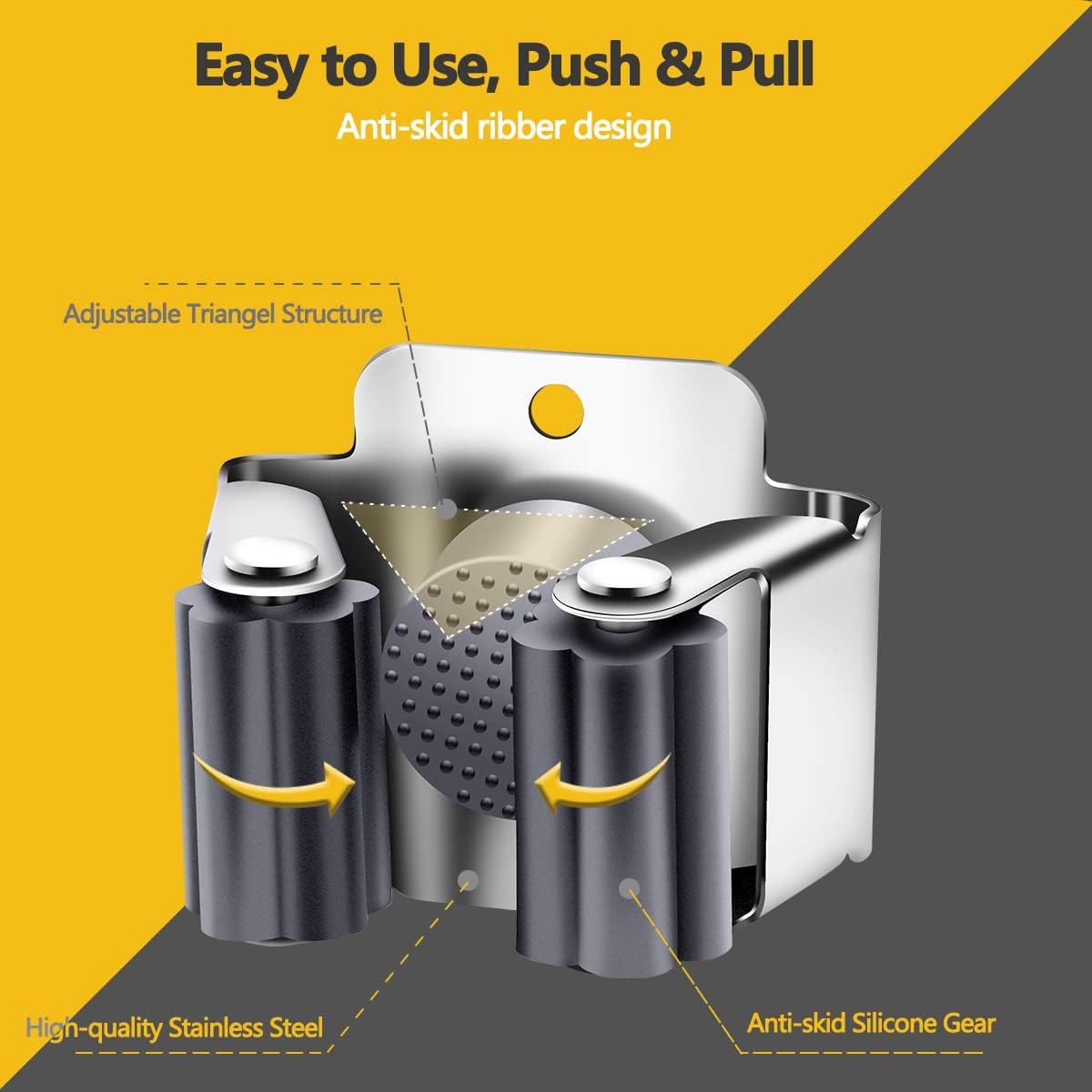 - Space-saving: Can be attached individually and placed individually. Once you clamp the broom handle into the triangular clip, it automatically adjusts to the different thicknesses of the handles and locks it without slipping.