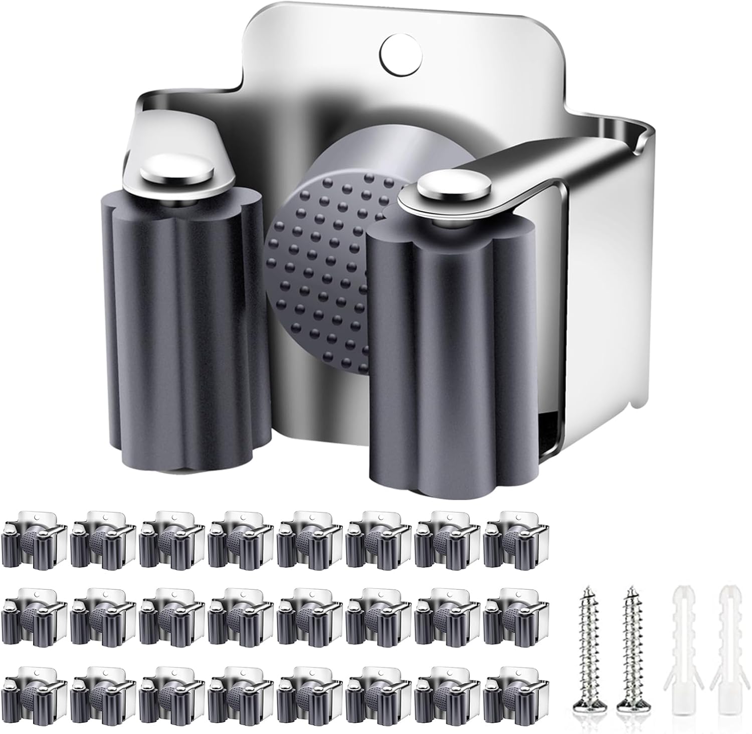 Verdenu 25 Pack Broom Holder Wall Mount, Mop and Broom Holder Wall Mount, Stainless Steel Command Mop Holder with Screws, Garden Tool Storage Organizer for Kitchen, Home, Bathroom, Garage, Grey