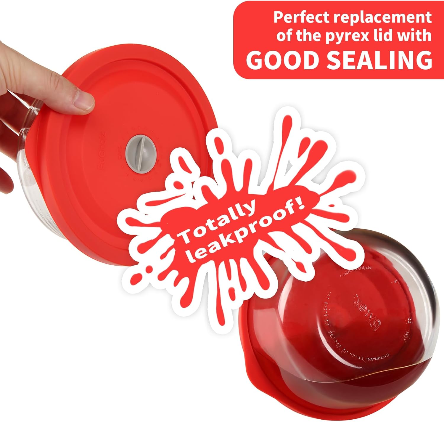 Replacement Lids for Pyrex 7200-PC 2 Cup, Silicone Round Storage Cover Lid for Anchor Hocking Glass Bowl 4 Pack with Date Mark Red