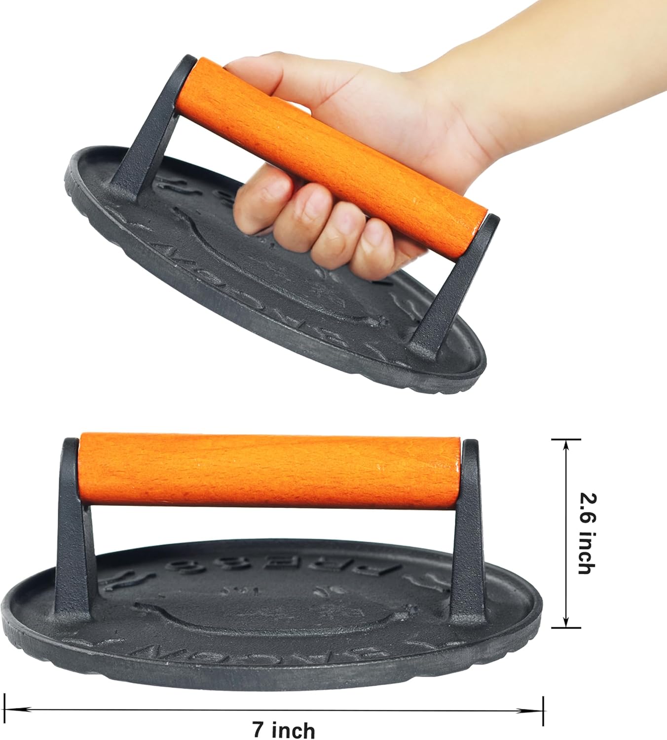 - π₯ Durable Cast Iron Construction β Made from food-grade cast iron, this 7-inch burger smasher is designed for long-lasting durability. It retains and distributes heat evenly, ensuring perfectly grilled and seared meats every time