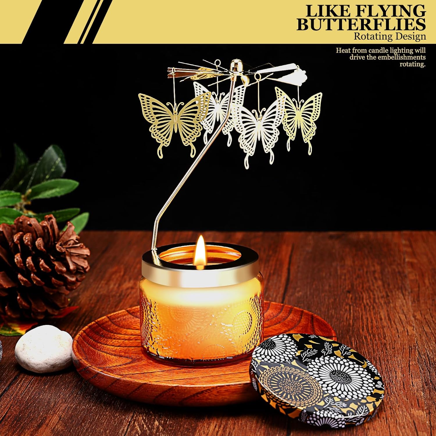 - Creates Mesmerizing Ambiance: As the flame dances across the candle, it casts ever-changing patterns that captures attention and creates a captivating atmosphere. Whether you're hosting a dinner party or enjoying at home, the rotating candle becomes a centerpiece of interest, enchanting people and creating a memorable experience