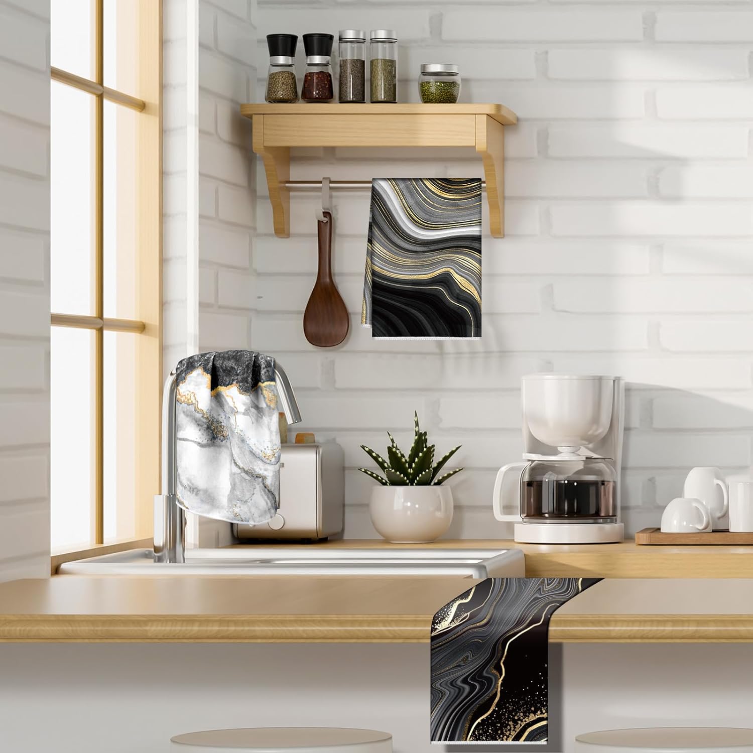 Boyiee Set of 6 Marble Kitchen Towels Gold Black Marble Tea Dish Towels 24 x 16 Inches Modern Absorbent Hand Washcloths Housewarming Gifts for Farmhouse Kitchen Bathroom Decorations