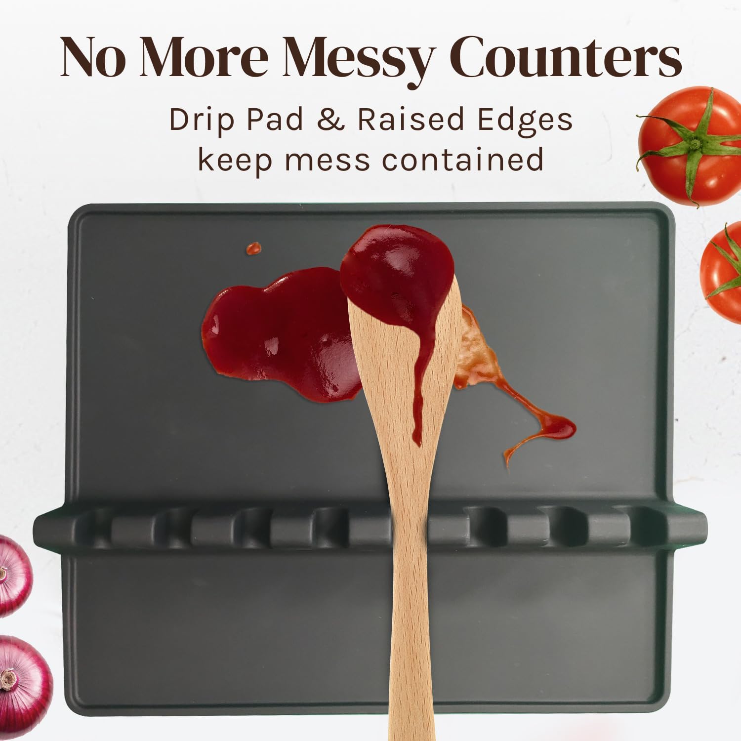 - RAISED EDGES: Each kitchen spoon holder is ergonomically designed to keep your kitchen counter drip-free and tidy. Raised edges prevent any spillage so you can focus on cooking instead of cleaning.