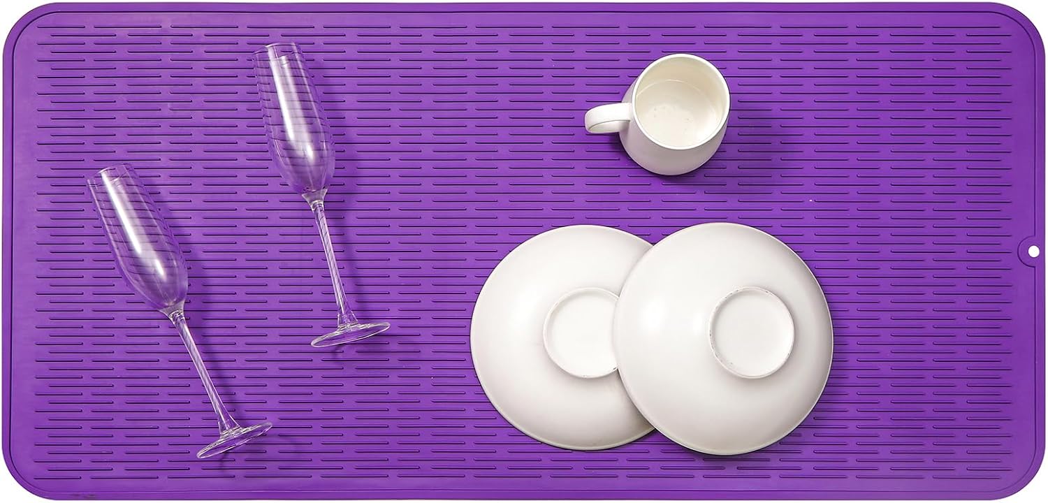 Silicone Dish Drying Mat for Multiple Usage,Easy clean,Eco-friendly,Heat-resistant Silicone Mat for Kitchen Counter or Sink,Refrigerator or Drawer Liner Purple 5XL 36inches x 18inches